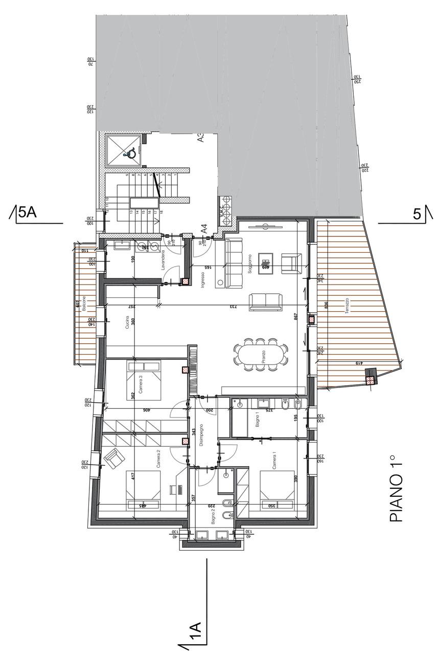- ampia zona giorno - soggiorno living con area pranzo e uscita sul grande terrazzo;