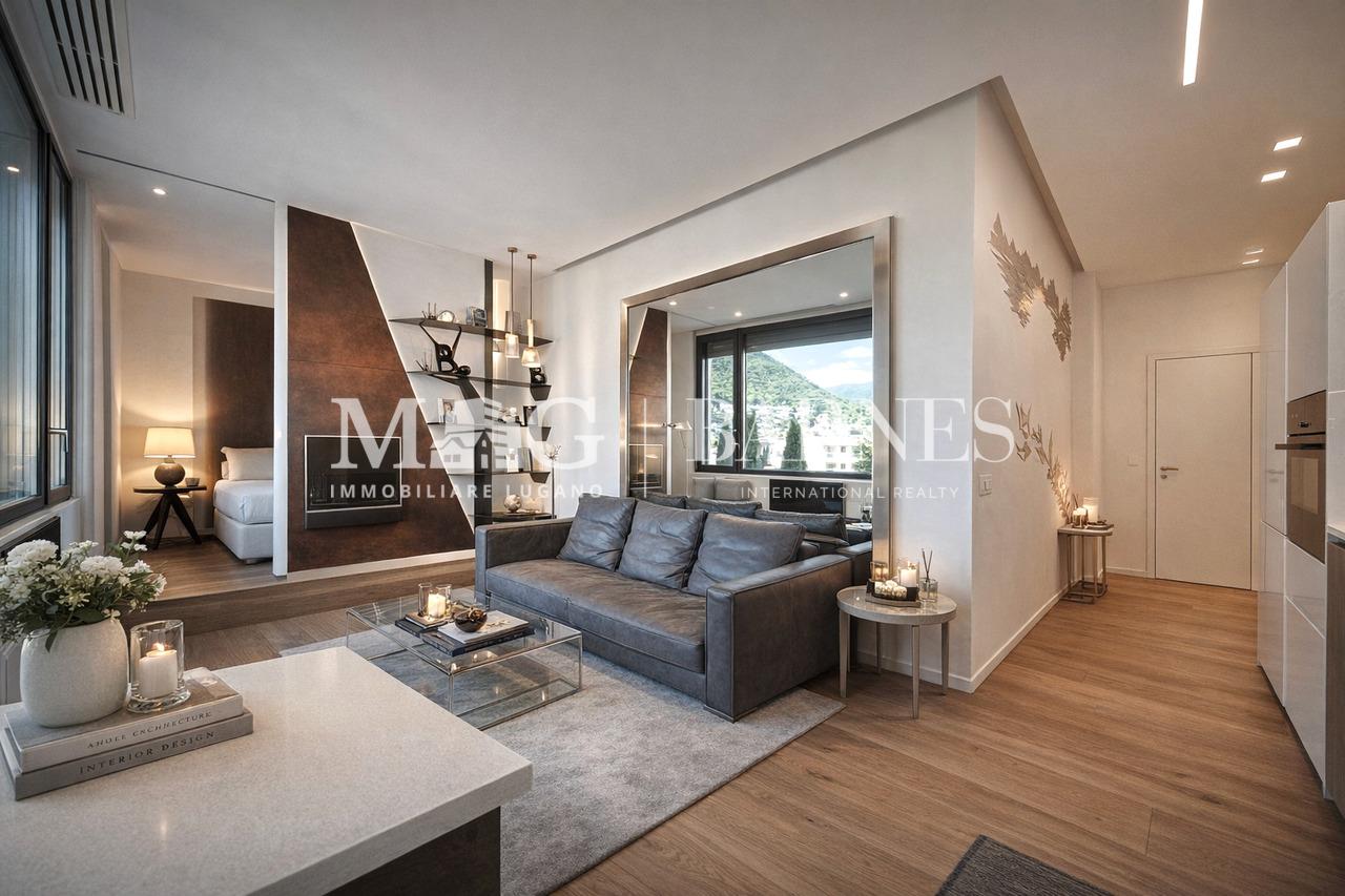 Nuovo, perfetto, contemporaneo. Un raffinato appartamento di 2.5 locali con vista lago, nel cuore di Lugano, pensato per chi desidera vivere la città con comfort, praticità e qualità costruttiva.