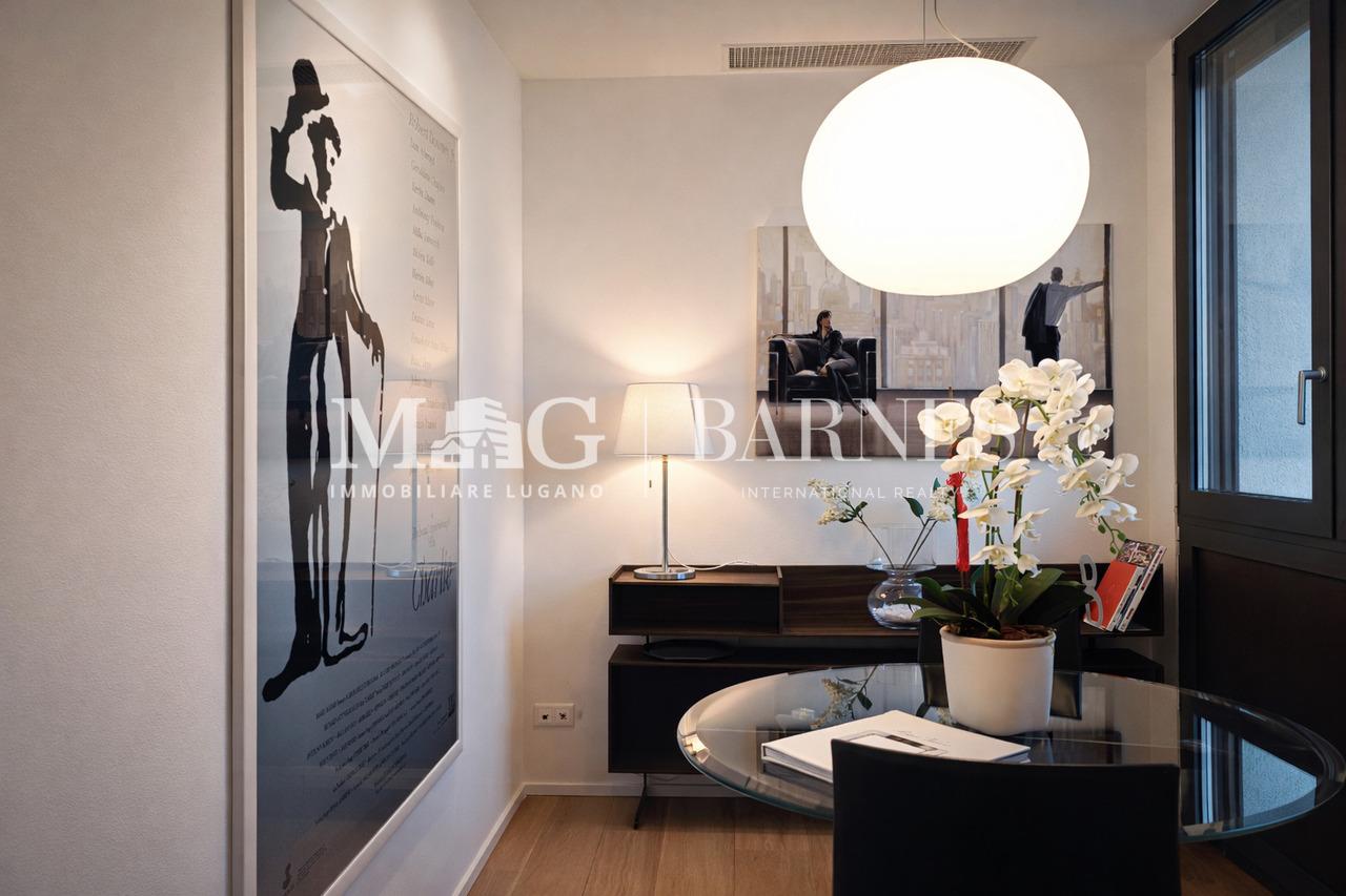 La posizione è strategica: a pochi passi dal centro, dal LAC Lugano Arte e Cultura, da Via Nassa e dai principali collegamenti stradali e autostradali. Nelle immediate vicinanze si trovano banche, scuole, negozi, mezzi pubblici e un curato parco pubblico.
