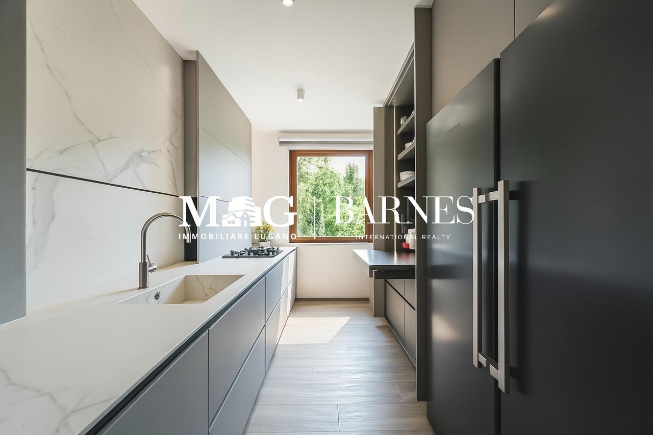 Eleganza e comfort a Lugano, in posizione residenziale privilegiata: immersa nella quiete e a pochi minuti dal centro città, proponiamo una casa moderna recentemente ristrutturata con gusto, caratterizzata da spazi armoniosi, finiture di pregio e un giardino privato, ideale per vivere all'aperto in ogni stagione.