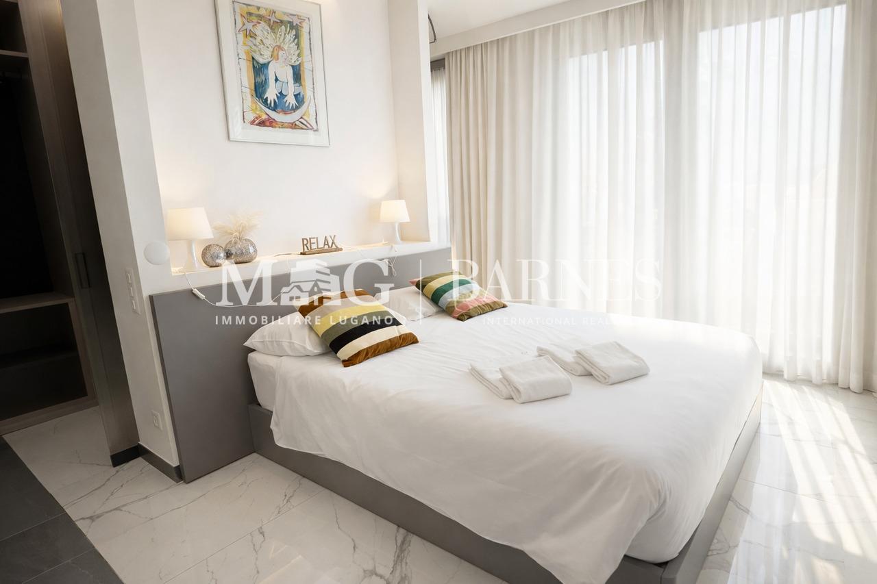 L'appartamento si trova all'interno di una residenza di lusso dal design elegante, con spettacolari viste panoramiche sull'acqua.