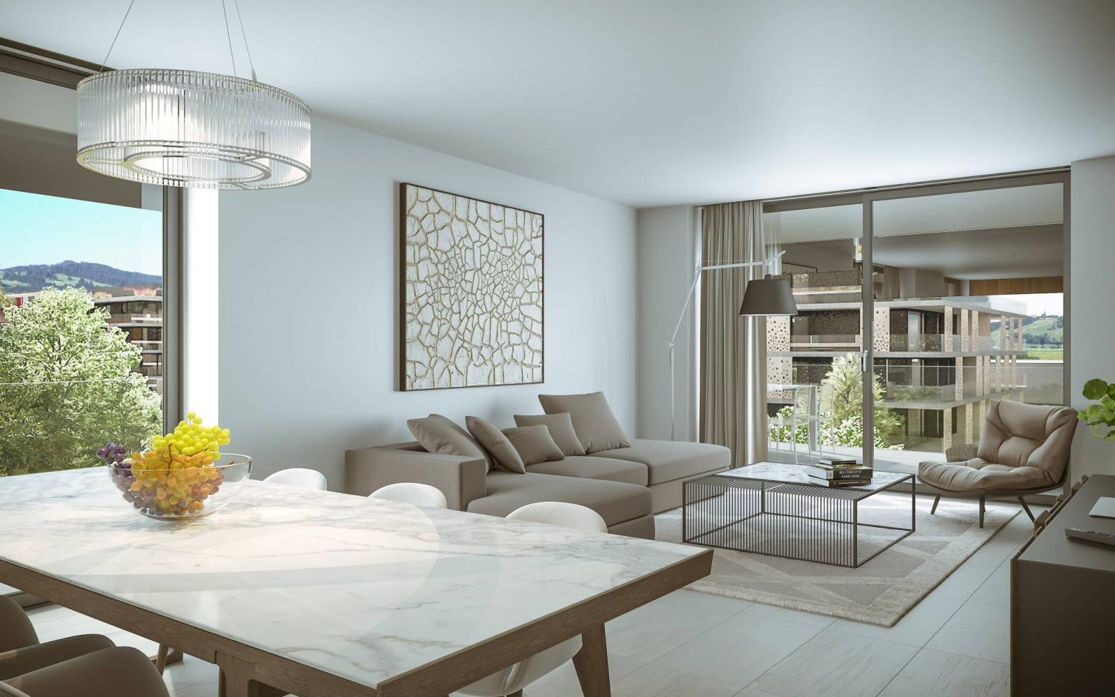 Le tipologie variano a seconda dei vostri desideri e delle vostre esigenze, da 2,5 locali a 5,5 locali su 5 piani, offrendovi una splendida vista sulla capitale della Gruyère.