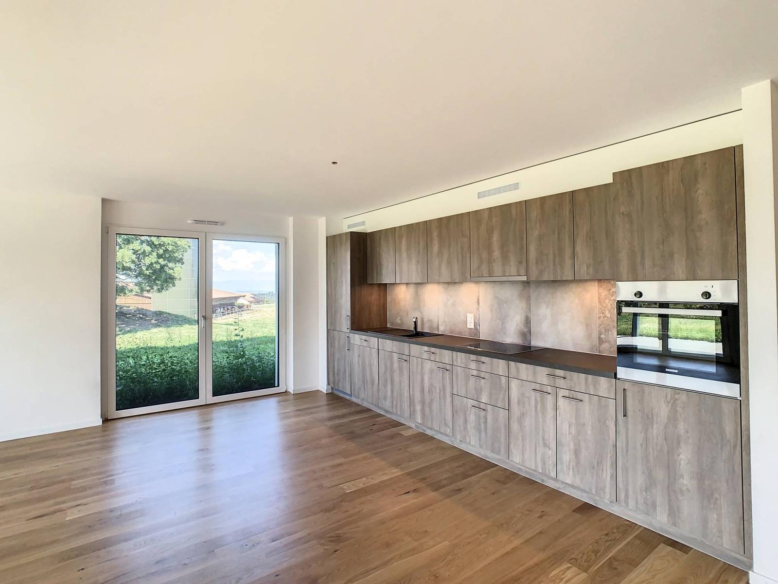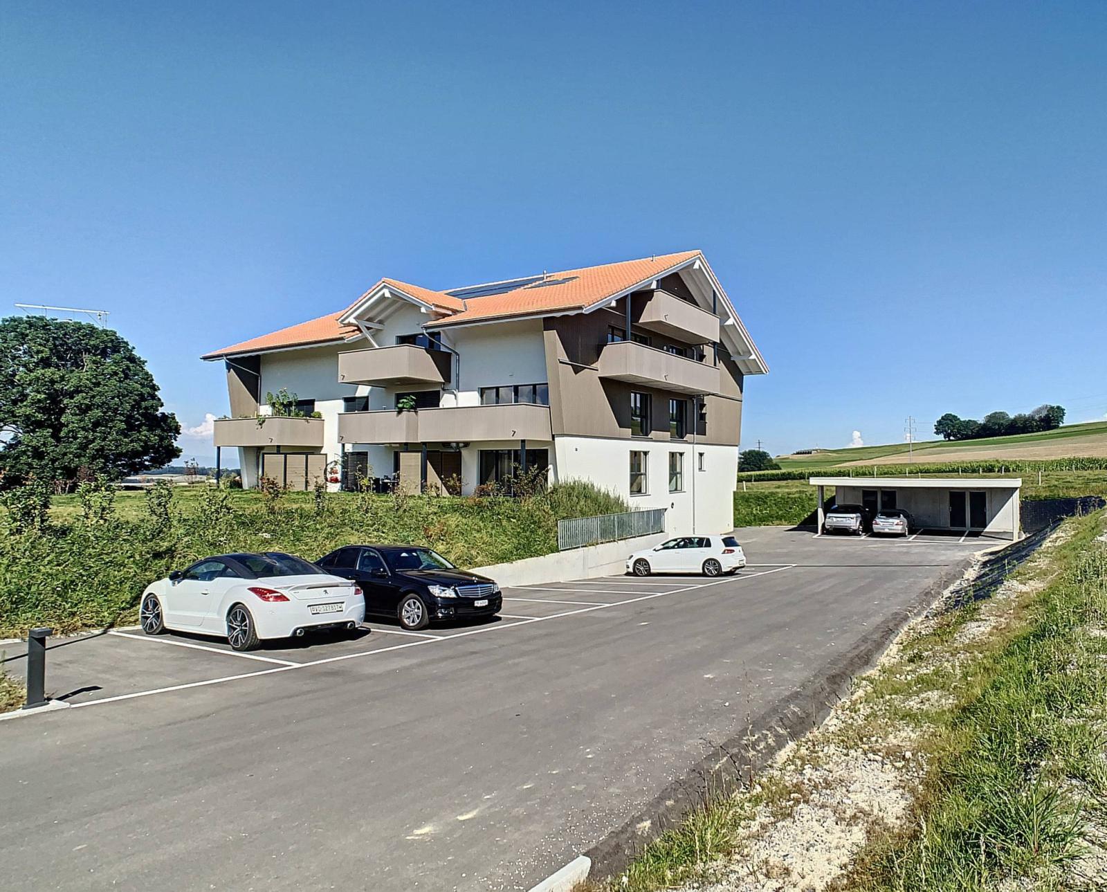 Idealmente situato tra Friburgo e Payerne, questo nuovo appartamento di 4,5 locali dispone di una superficie abitabile di 122,40 m², un balcone di 20 m² e una terrazza di 19,26 m², per un totale di una superficie ponderata di circa 138,82 m². Offre un ambiente di vita idilliaco che unisce la vicinanza alle 2 città beneficiando di un ambiente verde, ai margini di una zona agricola.