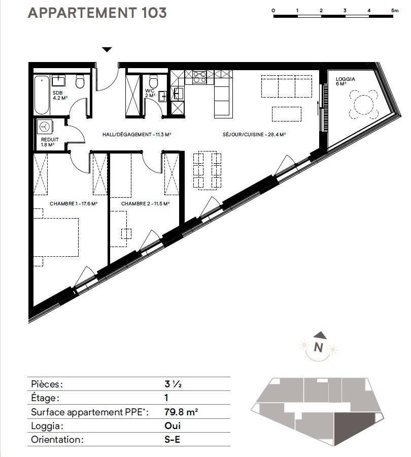 Composto da due edifici che si fronteggiano ma si completano a vicenda, il complesso riunisce, da un lato, eleganti appartamenti che offrono una visione chiara ai futuri occupanti e, dall'altro, ospita attività commerciali.