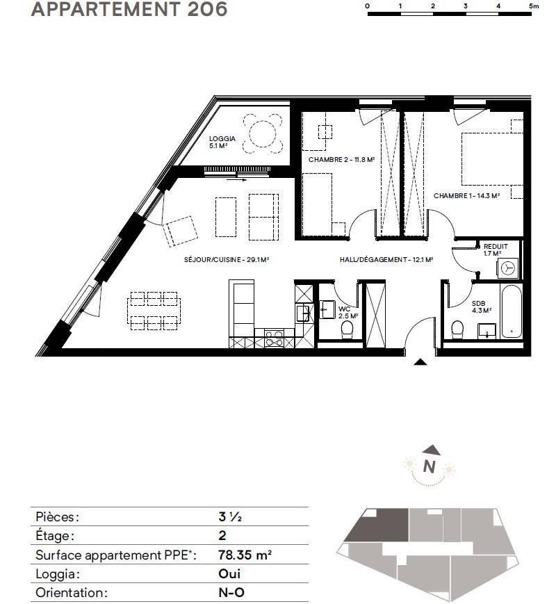 Composto da due edifici uno di fronte all'altro ma complementari tra loro, il complesso riunisce, da un lato, eleganti appartamenti che offrono una visione chiara ai futuri occupanti e, dall'altro, ospita attività commerciali.