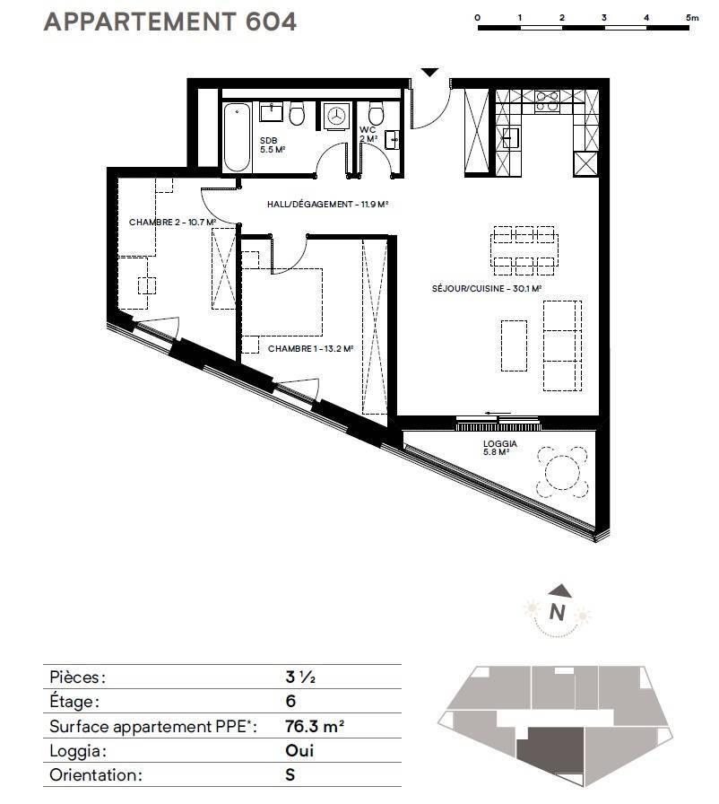 Composto da due edifici che si fronteggiano ma si completano a vicenda, il complesso riunisce, da un lato, eleganti appartamenti che offrono una visione chiara ai futuri occupanti e, dall'altro, ospita attività commerciali.