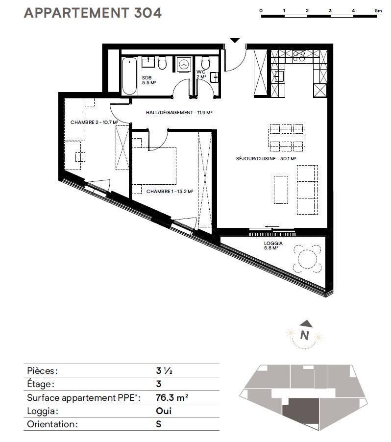 Composto da due edifici che si fronteggiano ma si completano a vicenda, il complesso riunisce, da un lato, eleganti appartamenti che offrono una visione chiara ai futuri occupanti e, dall'altro, ospita attività commerciali.