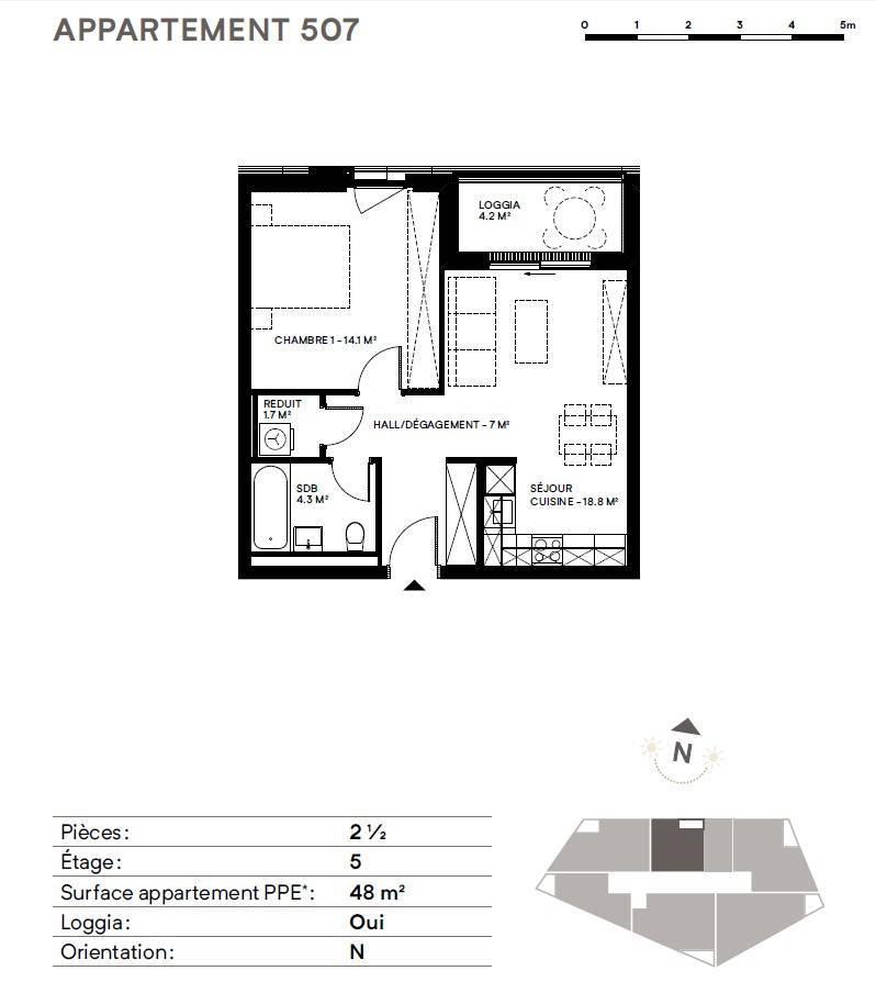 Composto da due edifici che si fronteggiano ma si completano a vicenda, il complesso riunisce, da un lato, eleganti appartamenti che offrono una visione chiara ai futuri occupanti e, dall'altro, ospita attività commerciali.