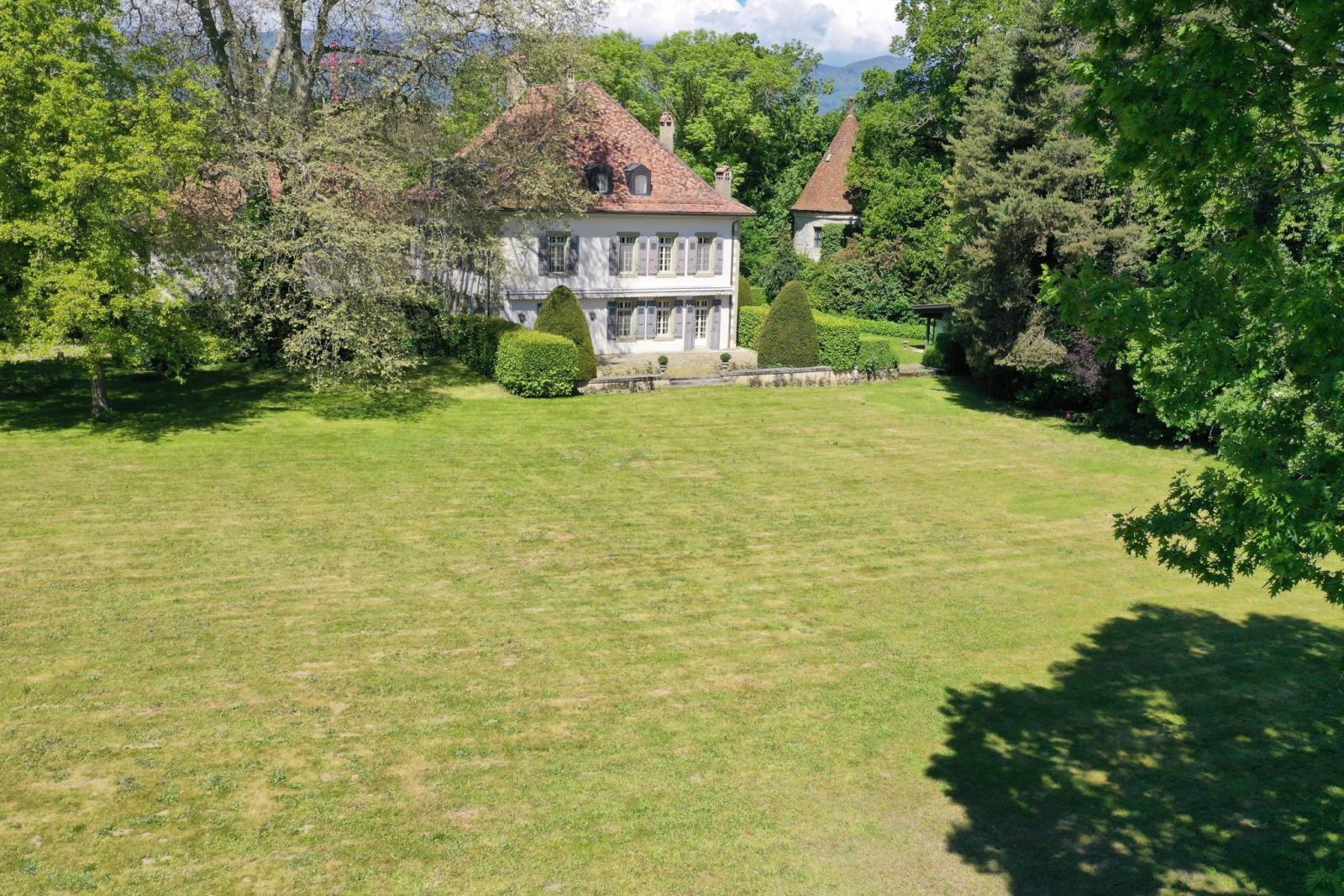 Fin dal primo sguardo si tratta di un ingresso discreto che si apre su un panorama bucolico, con un meraviglioso parco ricco di alberi secolari (alcuni alberi sono centenari) e anche una bella vista sulle Alpi e sulla campagna vodese.
