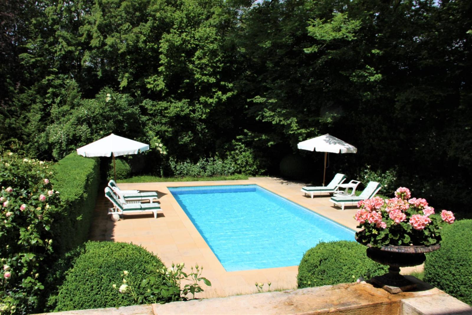 Ben orientata a sud-ovest, una piscina interrata riscaldata (4,5 mx 12 m), è delimitata da una terrazza per valorizzare l'area ricreativa all'aperto. Poolhouse nelle vicinanze (angolo cottura, doccia, WC).
