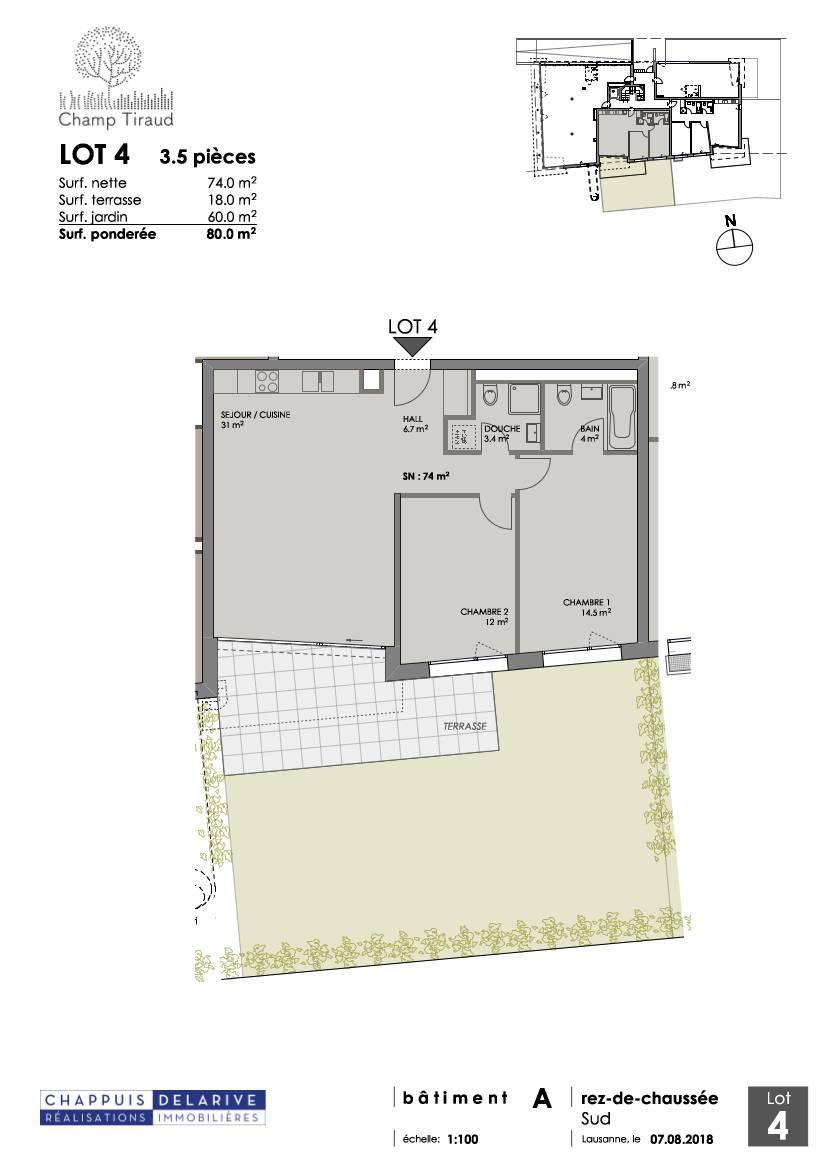 Il progetto tiene conto degli orientamenti, degli spazi visivi e dei vincoli del luogo per definire le diverse tipologie, che vanno da 2,5 a 4,5 locali. Tutti gli appartamenti dispongono di balconi prevalentemente esposti a sud. Attici con ampi terrazzi coronano ciascuno dei due corpi di fabbrica.
