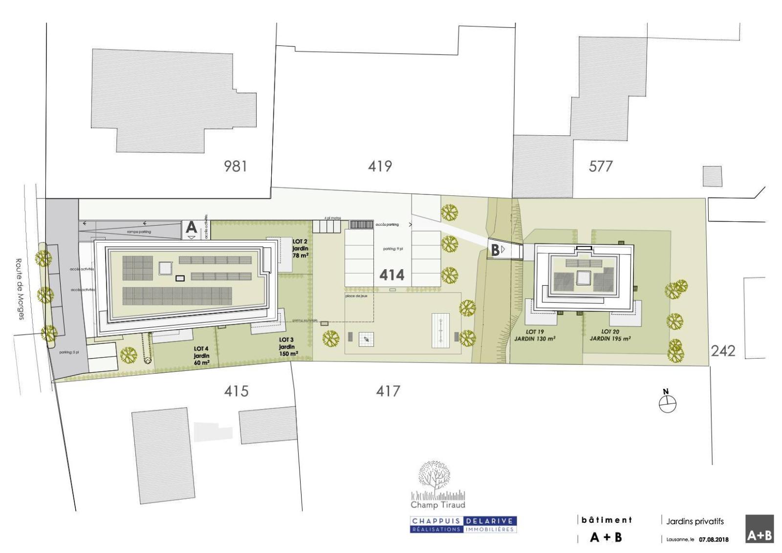 Il progetto tiene conto degli orientamenti, degli spazi visivi e dei vincoli del luogo per definire le diverse tipologie, che vanno da 2,5 a 4,5 locali. Tutti gli appartamenti dispongono di balconi prevalentemente esposti a sud. Attici con ampi terrazzi coronano ciascuno dei due corpi di fabbrica.