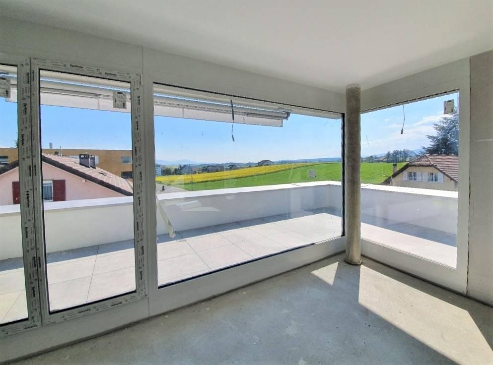 Magnifico attico nuovo di 4,5 locali (nel timpano dell'edificio, quindi incrociato e aperto su 3 lati), di buona qualità e di nuova costruzione (consegna entro settembre 2020!) con ampio terrazzo Sud/Ovest e vista sulla campagna.