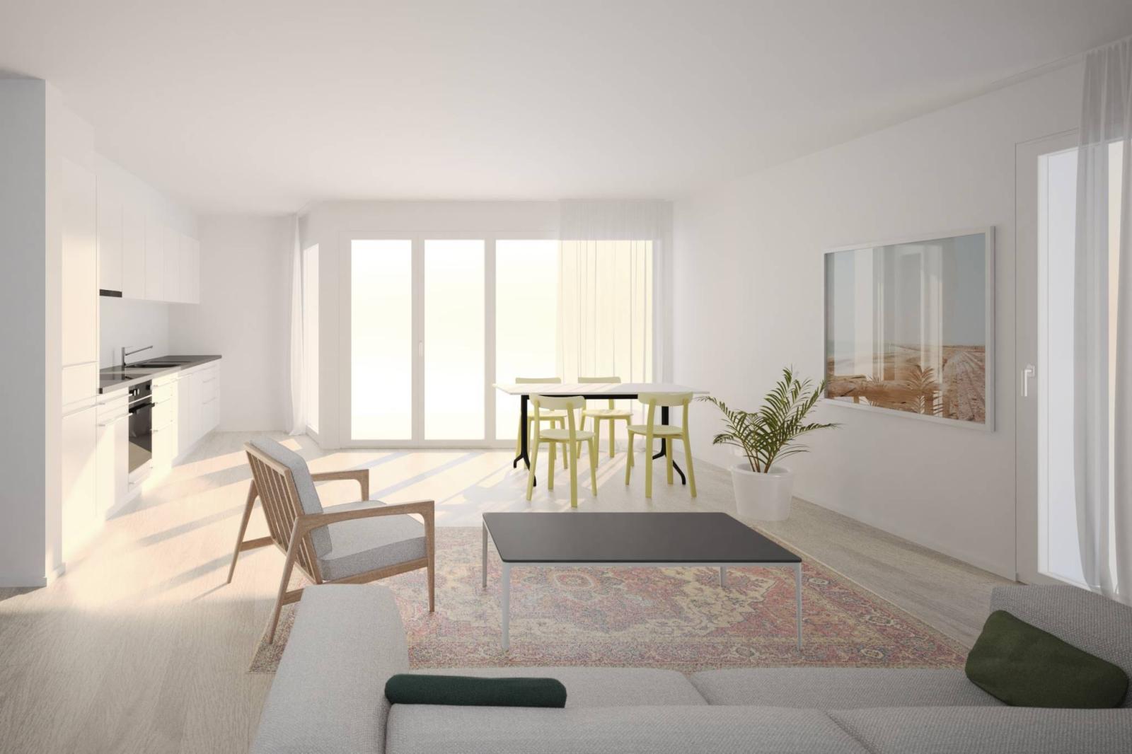 Le grandi vetrate nei soggiorni e la scelta delle ringhiere dei balconi conferiscono una certa trasparenza e garantiscono così una buona luce.