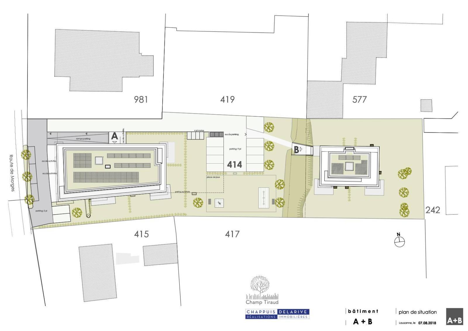 Di conseguenza, il progetto presenta due edifici differenziati, ciascuno dei quali è adattato a ciascuna zona, quello più lontano dalla strada, nella zona mista B, offre esclusivamente alloggi, mentre l'altro situato nella zona mista A offre, oltre agli alloggi , due aree destinate alle attività.