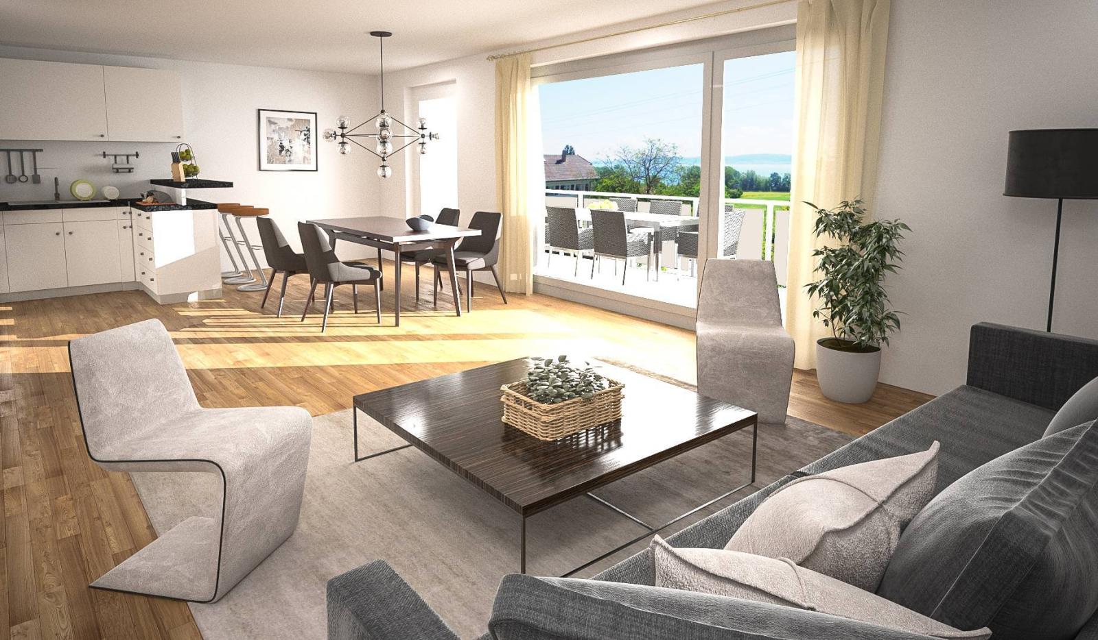 A 15 minuti da Yverdon-les-Bains, il nuovo progetto “Champs-Soleil”, distribuito su 4 piani, è composto da 7 appartamenti di 3,5 locali e 4,5 locali, con superfici che vanno da 79 a 130 m².