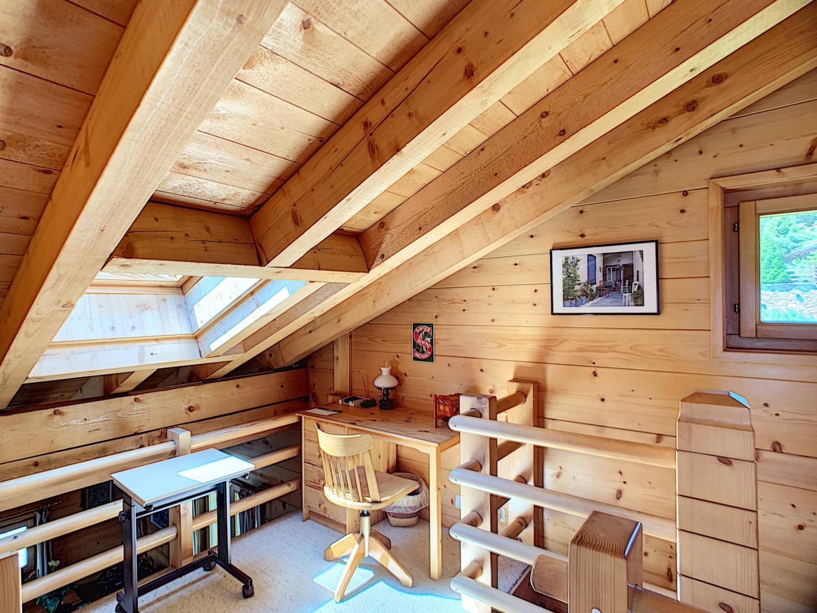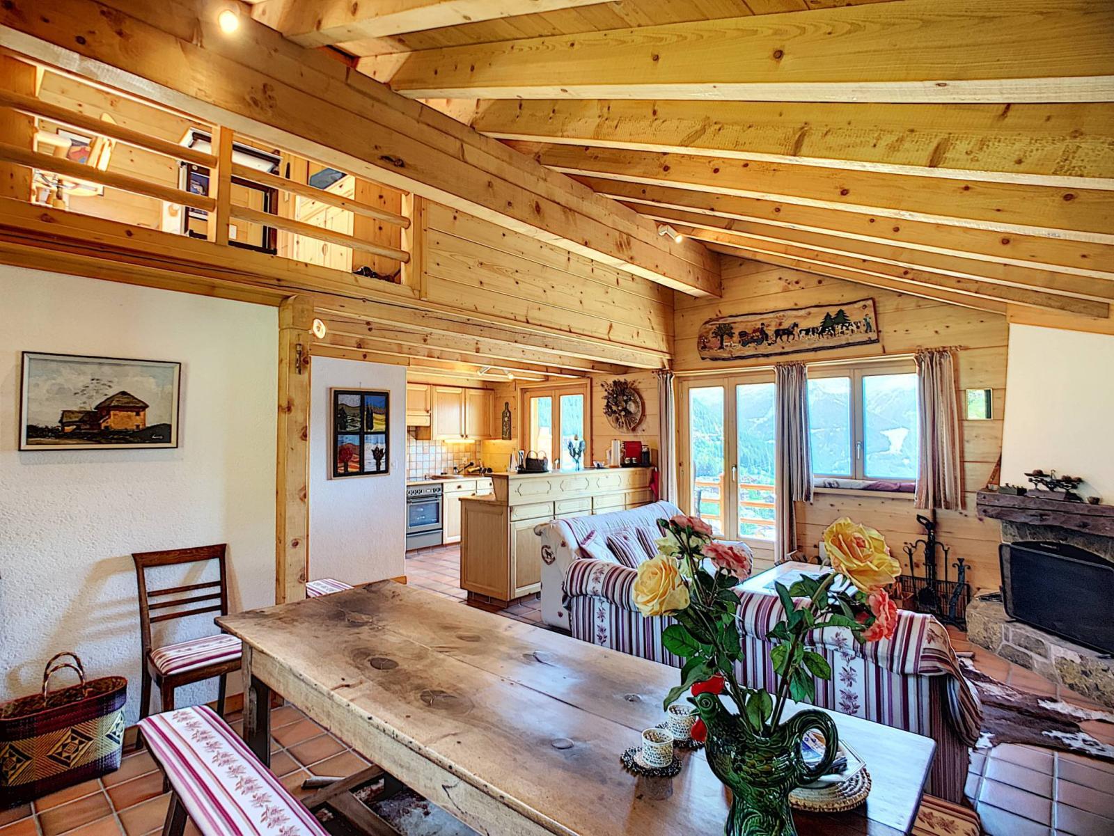 Delimitata da una magnifica vista sulla località e sulle Alpi, la struttura offre 2 camere da letto, 2 bagni/docce, un luminoso e accogliente soggiorno con un bellissimo camino autentico, una zona pranzo e una cucina attrezzata. Anche il suo soppalco che si affaccia sul soggiorno gli conferisce molto carattere.