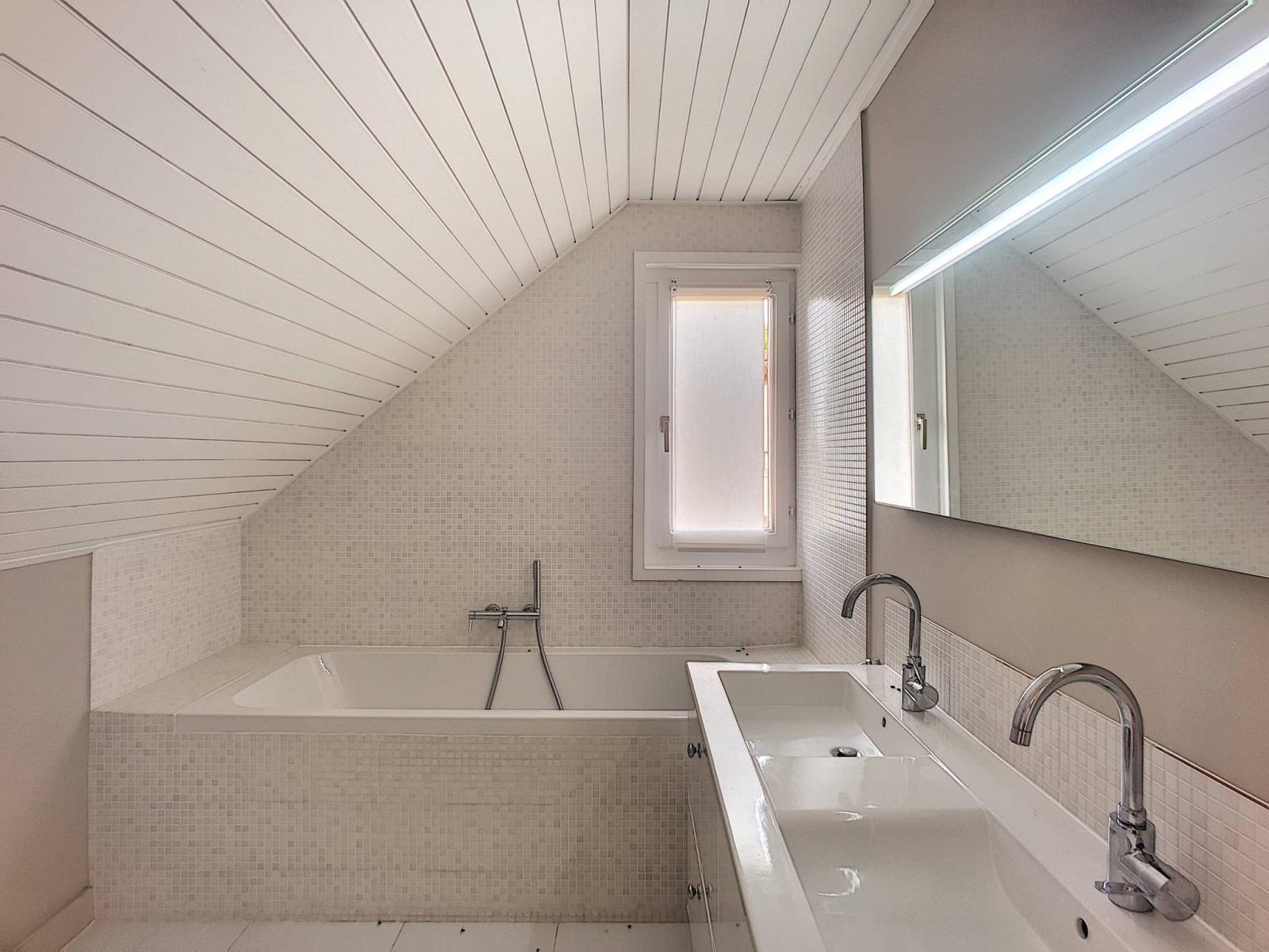 Costruita su un terreno di oltre 650 mq, la villa è disposta su 2 livelli + mansarda. Dispone di un gradevole ingresso con armadio, una cucina attrezzata con zona pranzo ed un gradevole soggiorno con camino, arricchito da una veranda aperta sul giardino. La zona notte è al piano superiore ed è composta da 3 camere da letto ciascuna con armadi. La camera da letto principale ha anche un bagno privato con 2 lavandini e un secondo bagno completa questo livello. Nel sottotetto, raggiungibile tramite scala, è stata allestita una camera o locale pluriuso.