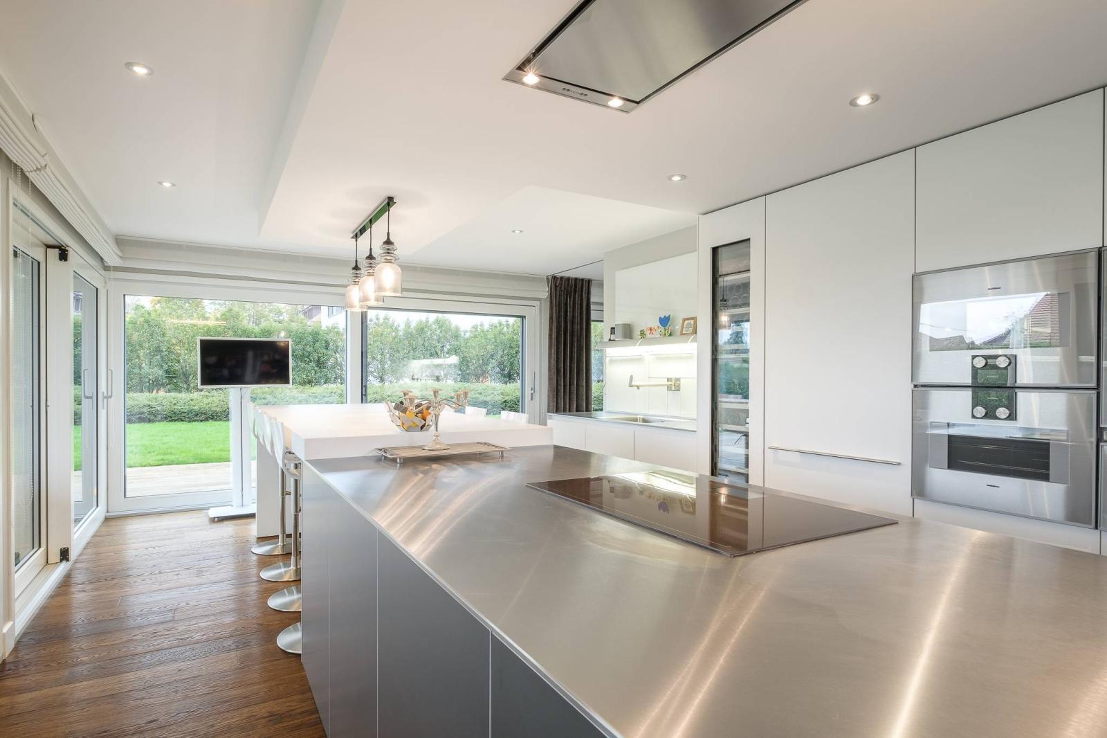 La seconda ala ospita la cucina "Bulthaup", magnificamente attrezzata con elettrodomestici di alta qualità e la sala da pranzo collegata alla terrazza in legno.