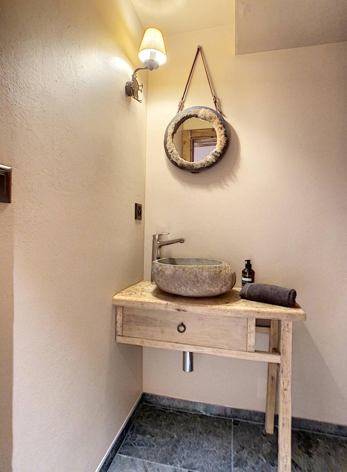 La combinazione di materiali autentici come il legno vecchio e la pietra conferisce a questo oggetto un'atmosfera decisamente Alpine Chic!