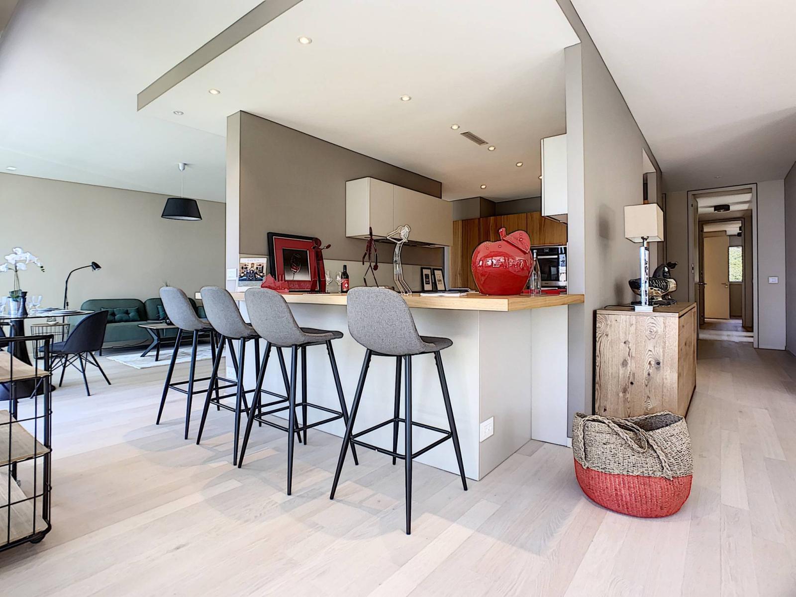 Situato al piano terra di un edificio composto da sette appartamenti, questo spazioso appartamento di 5 locali esposto a sud-est delizierà i visitatori che cercano calma e benessere.