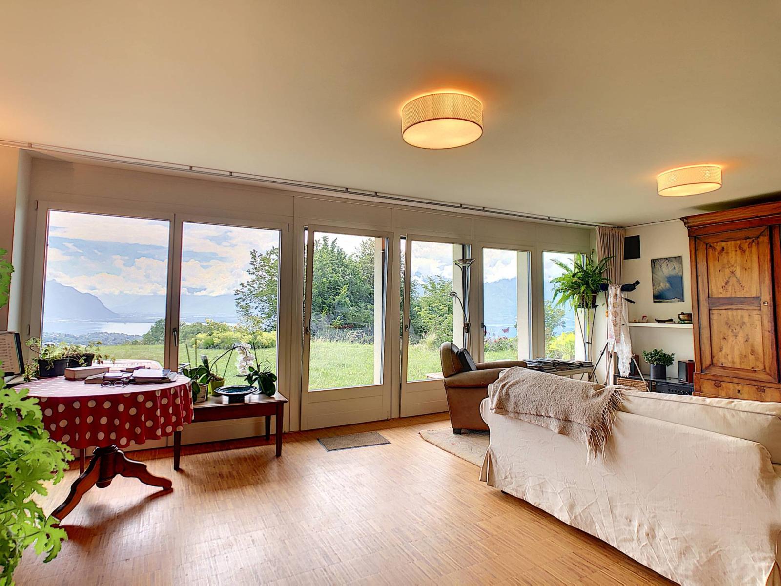Ristrutturato nel 2013 con grande gusto e modernità grazie ai suoi materiali di qualità, gode di una magnifica vista sul Lago di Ginevra e sulle montagne, grazie al suo orientamento a sud.