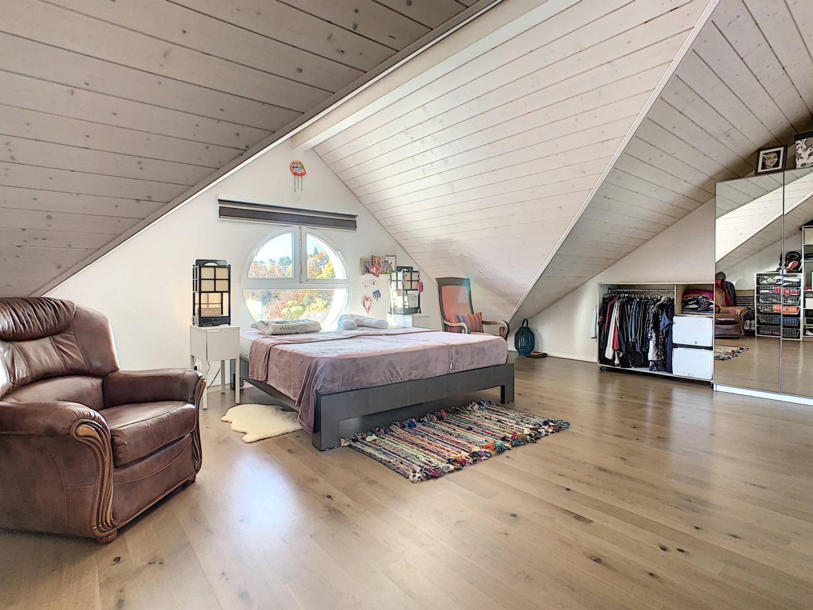 Situata in una zona residenziale di Belmont-sur-Lausanne, questa villa adiacente beneficia di una posizione verde, vicino ai trasporti pubblici, alle scuole e alle autostrade. Servita da strada privata, gode di una calda atmosfera, ideale per una famiglia.