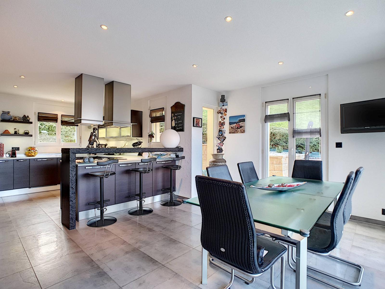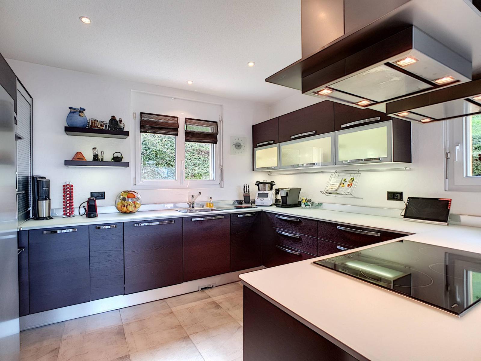 Costruita su un terreno dominante di 1.104 m², questa villa dispone di 5,5 vani e beneficia di piacevoli esterni come una generosa terrazza pavimentata con jacuzzi, un bellissimo giardino e diversi posti auto.