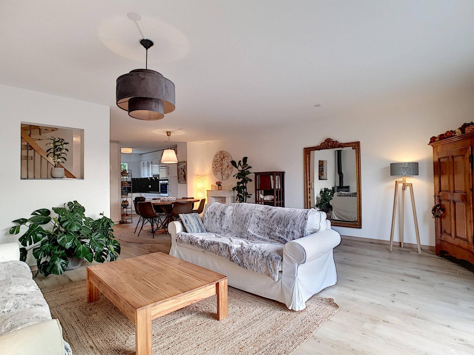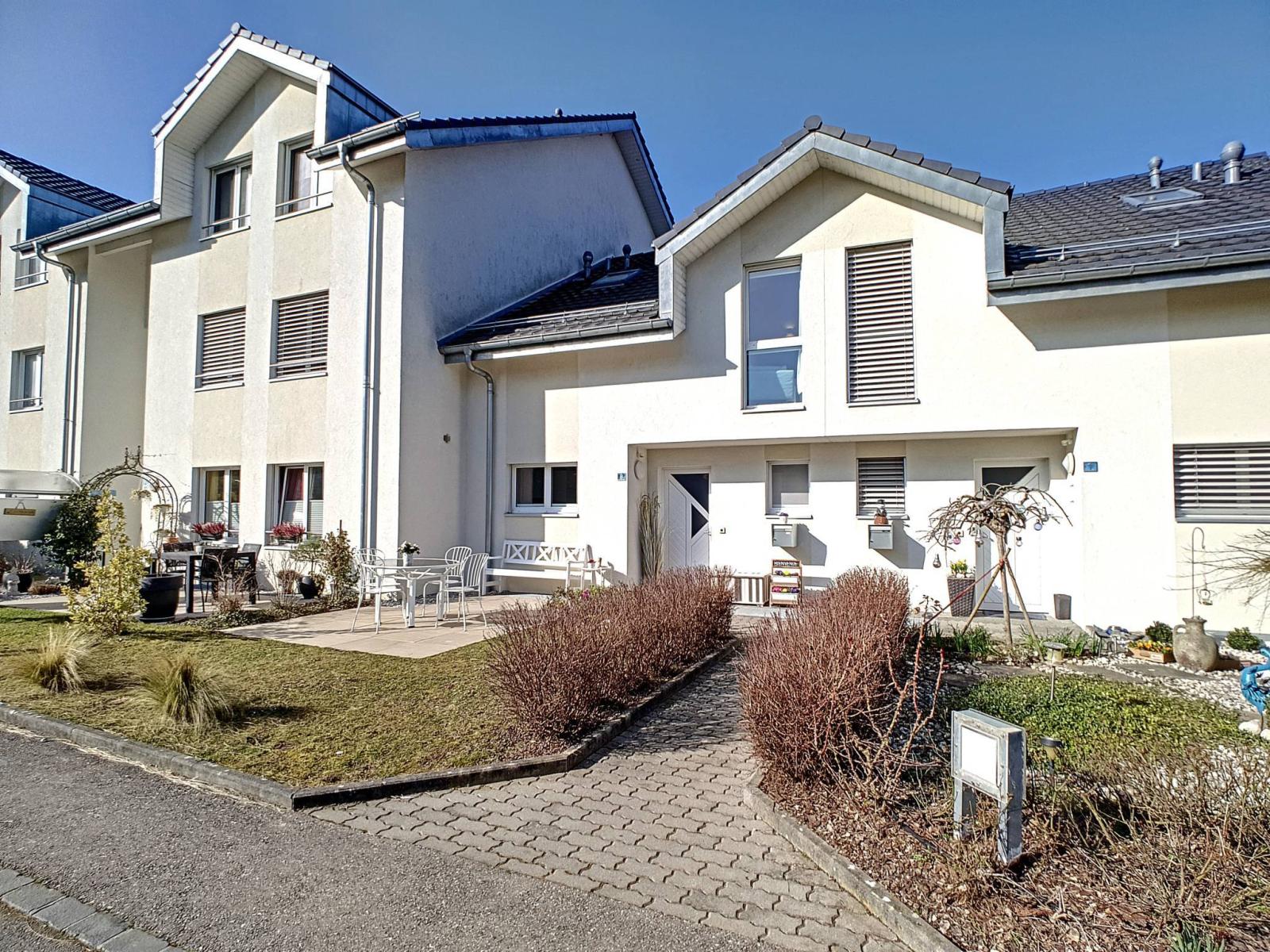 Questo spazioso alloggio di 142 m² di superficie abitabile, distribuito su 3 livelli di 169 m² di superficie utile, offre una tipologia molto piacevole: un ingresso con armadi a muro, un ampio soggiorno/sala da pranzo con 2 belle terrazze idealmente orientate, così come una bella cucina a vista, moderna e funzionale. La zona notte dispone di 3 camere da letto di cui una master suite con annesso bagno e spogliatoio. Inoltre, una camera per gli ospiti con spogliatoio e area benessere (doccia italiana e sauna), un'ampia cantina laboratorio e una spaziosa lavanderia. Questa confortevole villa dispone di un totale di 3 bagni e 2 bagni per gli ospiti.