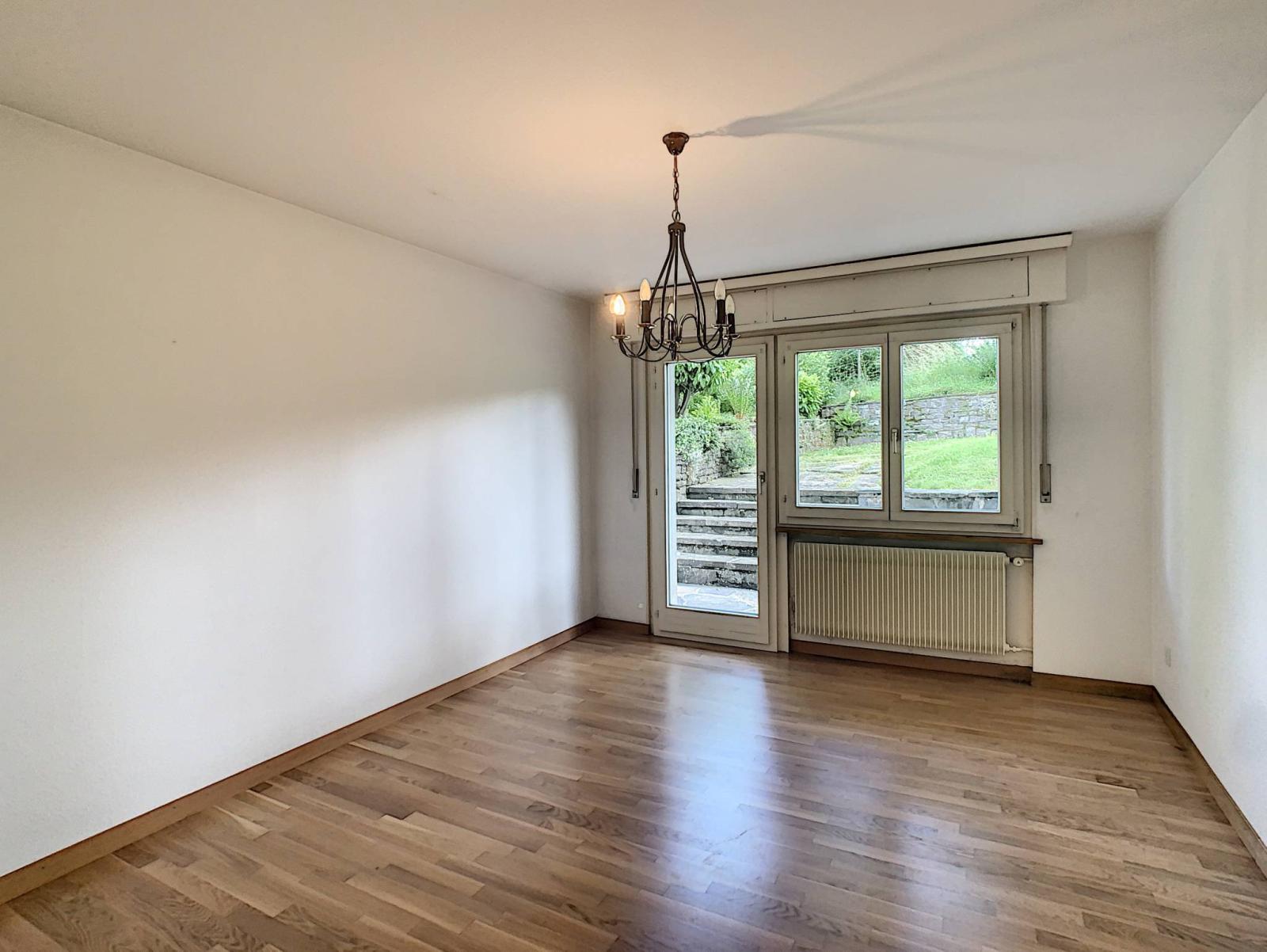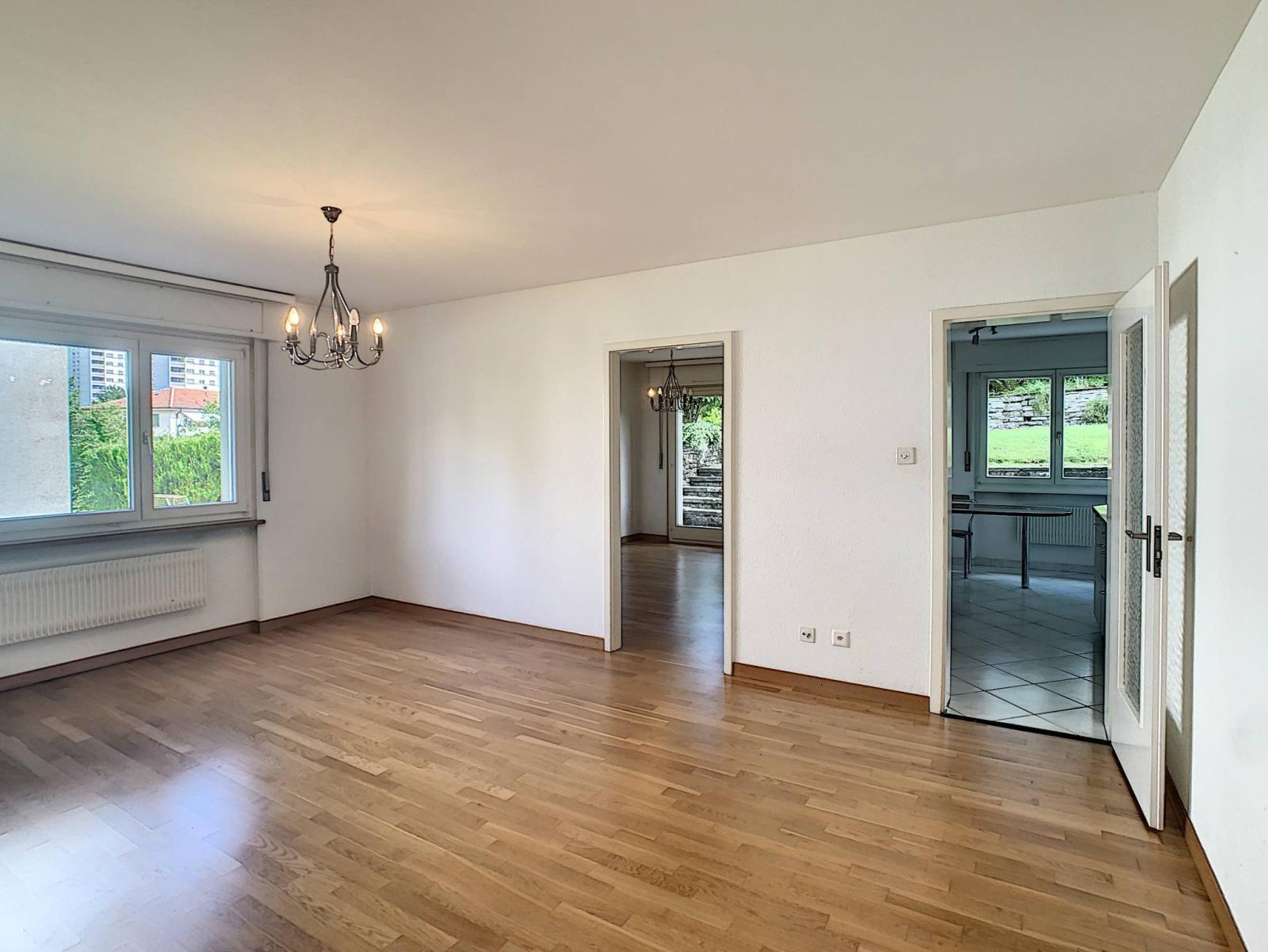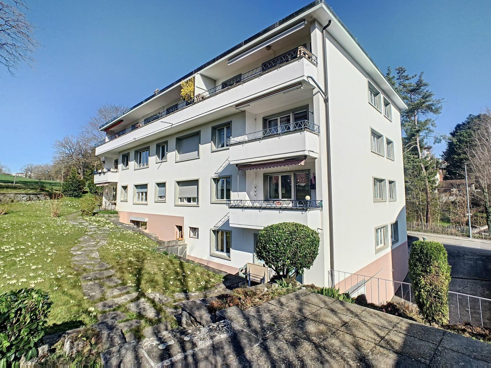 Costruito nel 1963, questo affascinante appartamento di 4,5 locali, esposto a sud, dispone di una superficie abitabile di 84 m², completata da una terrazza di 20 m², per una superficie complessiva di 91 m². Si trova in un edificio PPE di 10 unità abitative ai margini di un terreno agricolo.