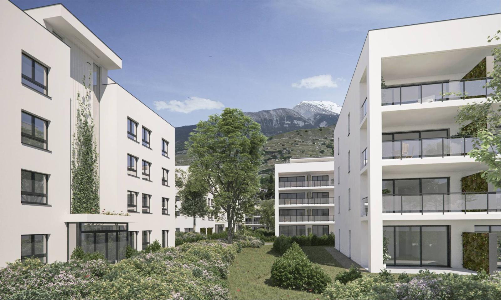 L'eco-quartiere “Greenparc” si trova nel quartiere Champsec di Sion, vicino a tutti i servizi e ai trasporti pubblici.