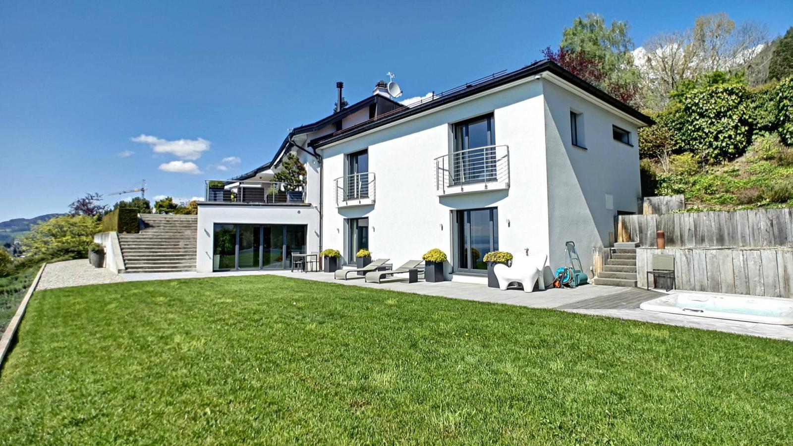 Sontuosa proprietà di 9,5 locali di circa 450 m² di superficie abitabile che beneficia di una posizione dominante, in una zona residenziale molto tranquilla, con una spettacolare vista panoramica sul Lago di Ginevra e sulle montagne.