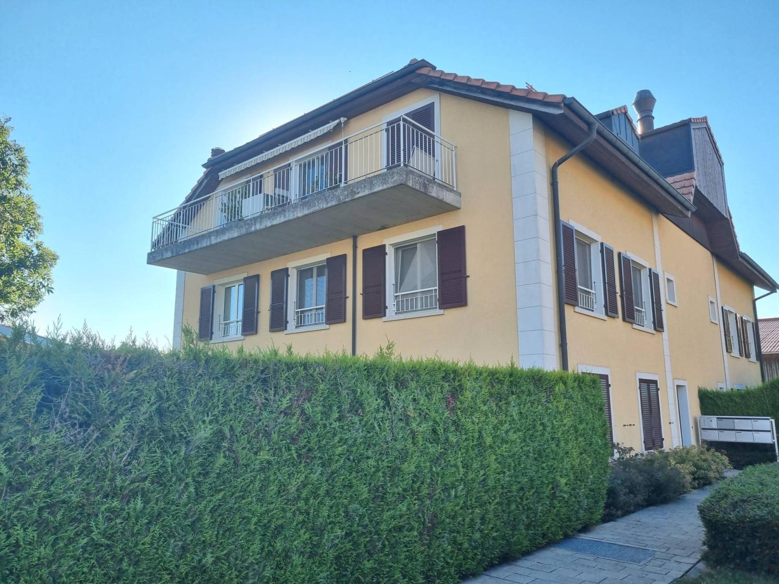 Situato al secondo ed ultimo piano di una piccola palazzina di 6 comproprietari, questo appartamento è ideale per una famiglia che cerca la tranquillità della campagna con tutti i servizi (scuola e asilo nelle immediate vicinanze, Denner, negozio di alimentari, panificio, ristorante e trasporti pubblici) pur rimanendo a 15 minuti da Morges