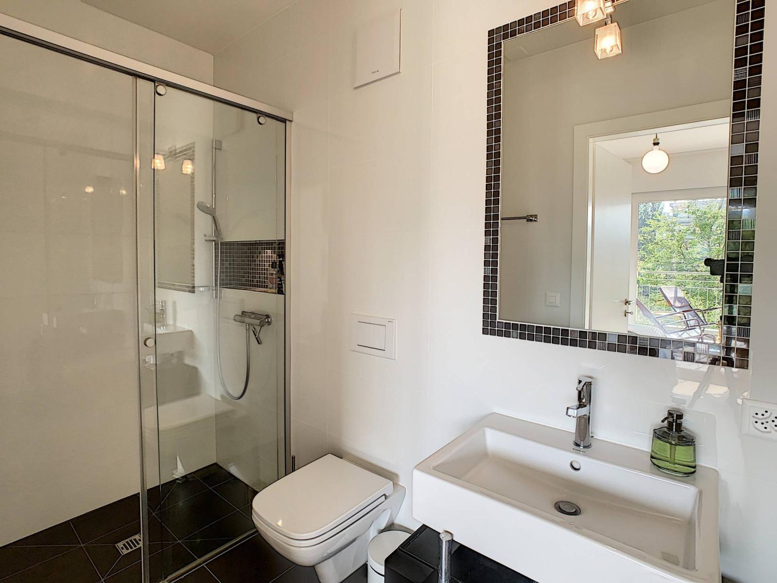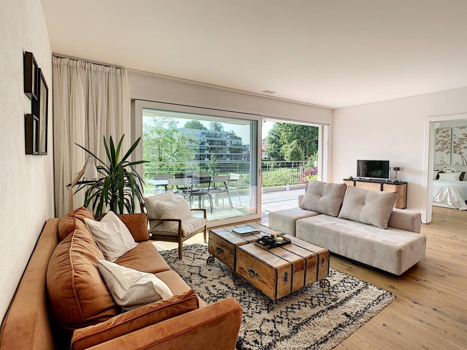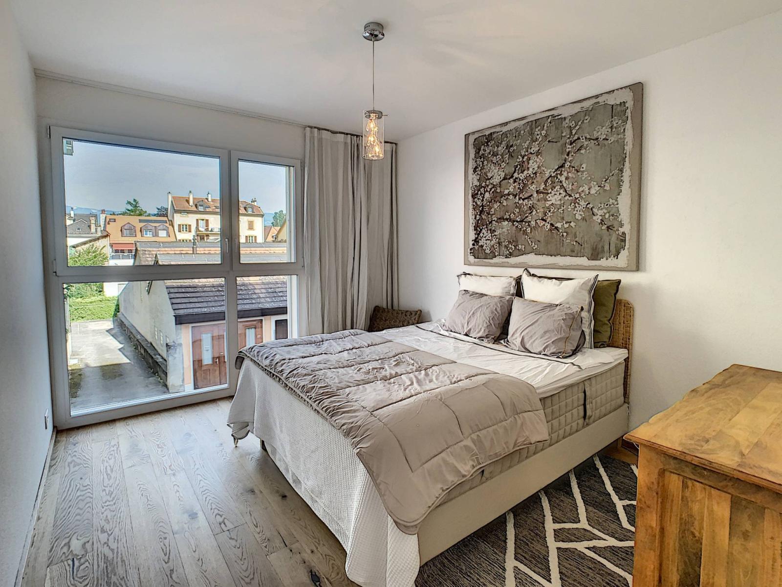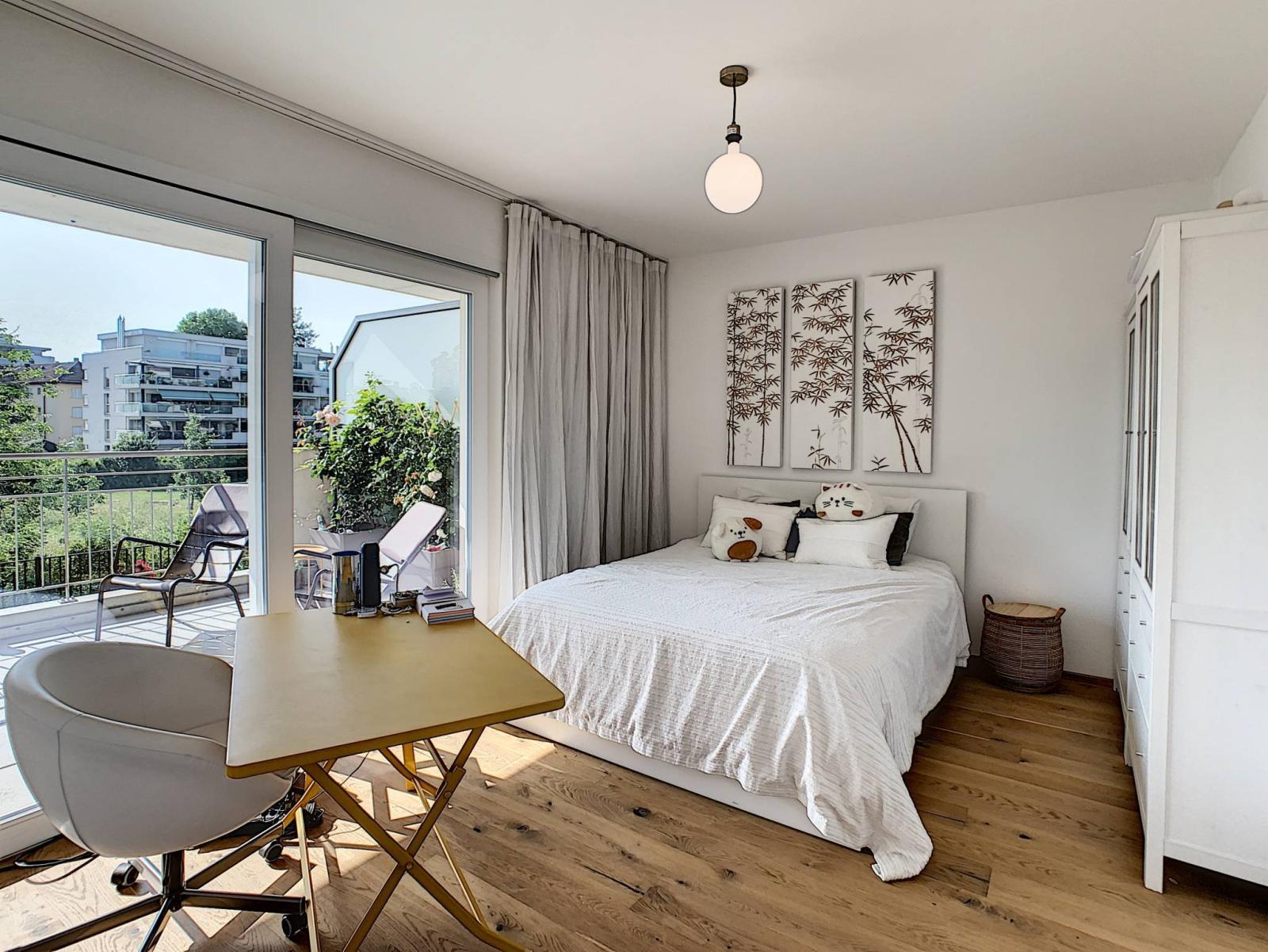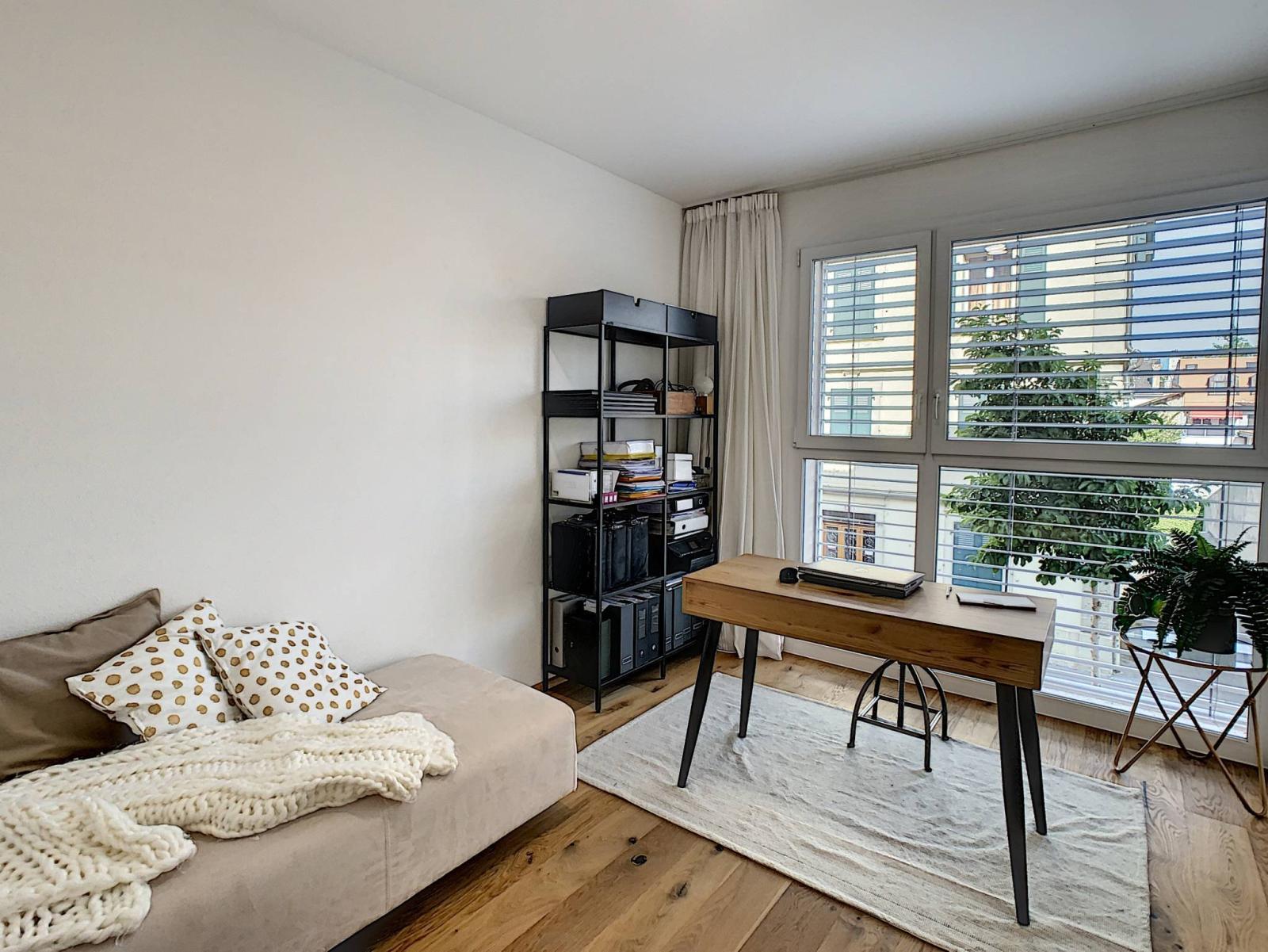 Situata nel centro storico della bellissima città di Yverdon-les-Bains, questa magnifica proprietà situata al 1° piano di un PPE costruito nel 2013 vi sedurrà con i suoi servizi di fascia alta e i suoi bellissimi volumi. Elegante e dallo stile moderno, questo appartamento di 4,5 locali offre una superficie abitabile di circa 115 m² e soffitti alti. Dispone di un ingresso - con armadi a muro - che dà accesso alla cucina molto ben attrezzata, al soggiorno/sala da pranzo e allo spazioso balcone di circa 27 m². L'appartamento dispone di due camere matrimoniali con spogliatoi e annessi bagni con doccia/WC, una delle quali ha accesso diretto al balcone, nonché una camera da letto che ora funge da ufficio. Completa questa sistemazione anche un bagno con colonna per il lavaggio.