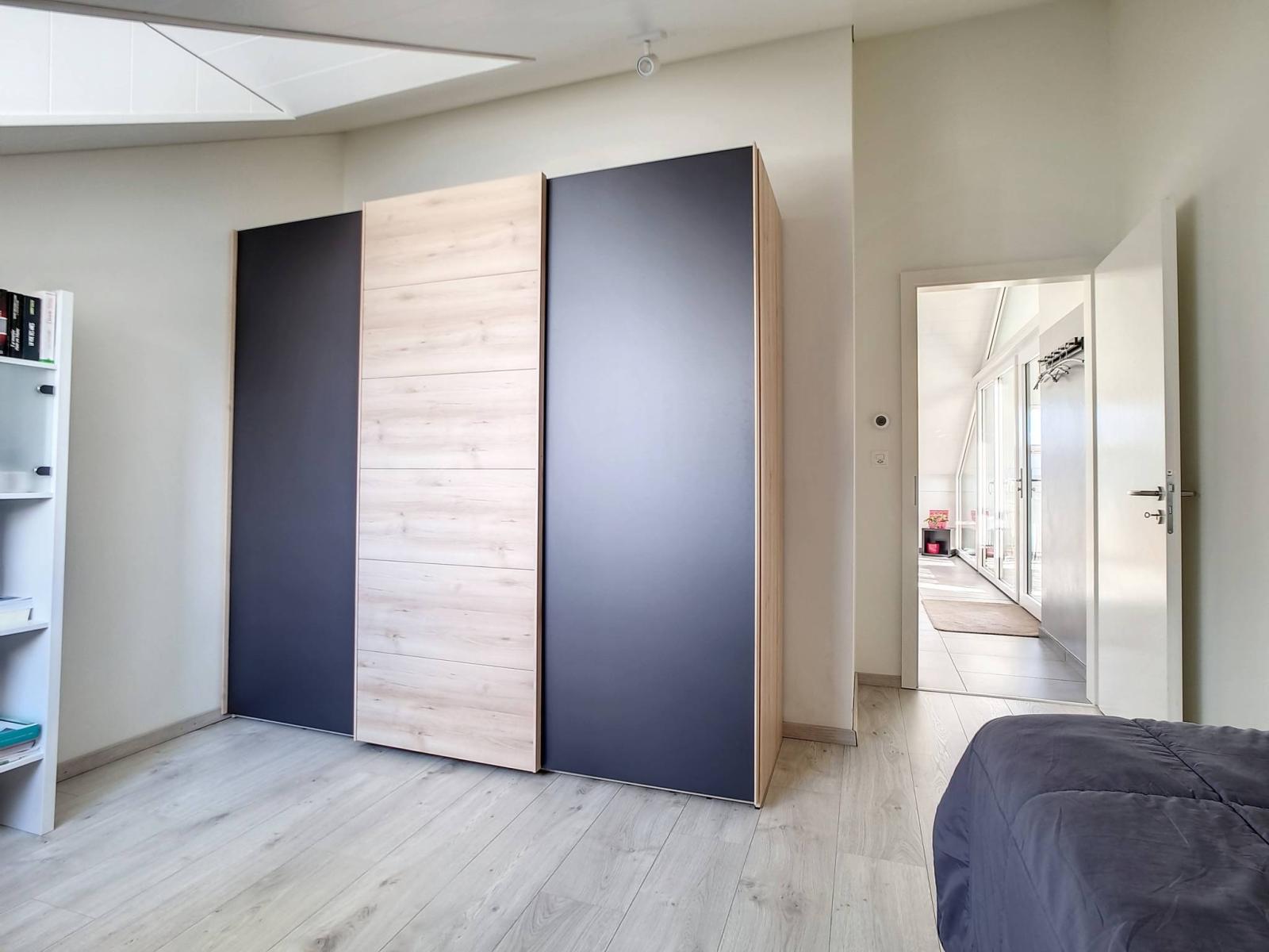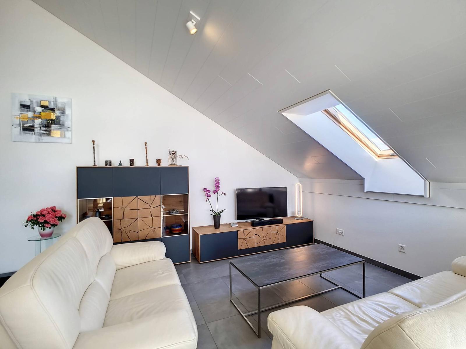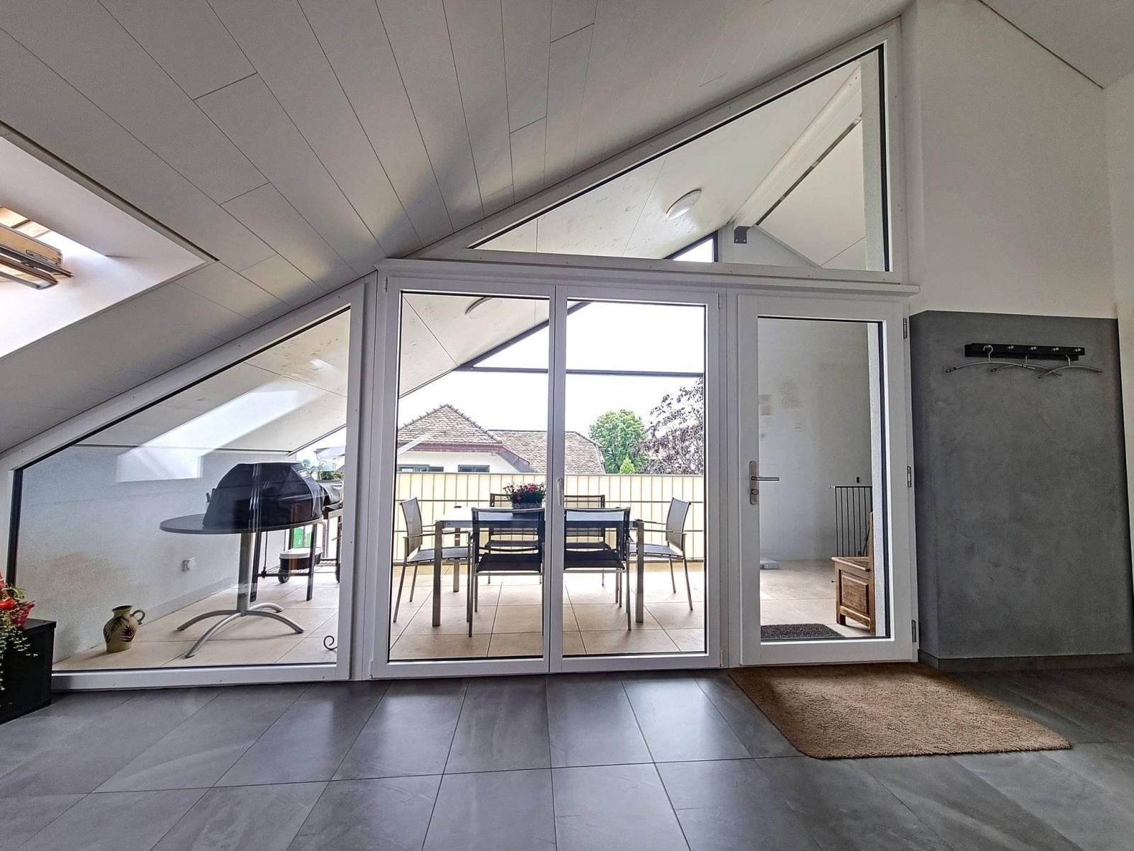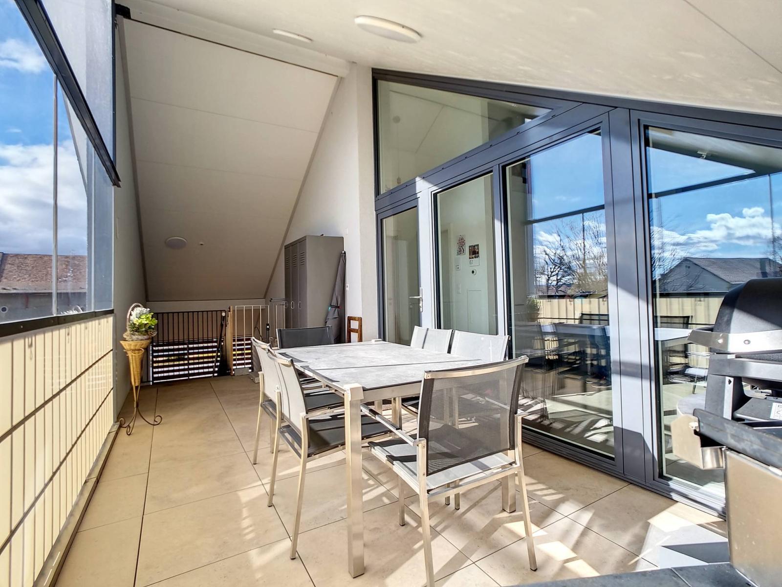 All'interno di un edificio a misura d'uomo di 2 piani (lotto ultimo piano = senza ascensore), costruito nel 2017, il PPE è costituito da 2 piccoli edifici di 6 e 8 lotti. L'appartamento è mansardato, con un ampio balcone coperto (tipo loggia aperta) di quasi 19 mq! Questa è organizzata in modo da poter rimanere "aperta" o "semichiusa" da vetri amovibili, per poterne beneficiare tutto l'anno.
