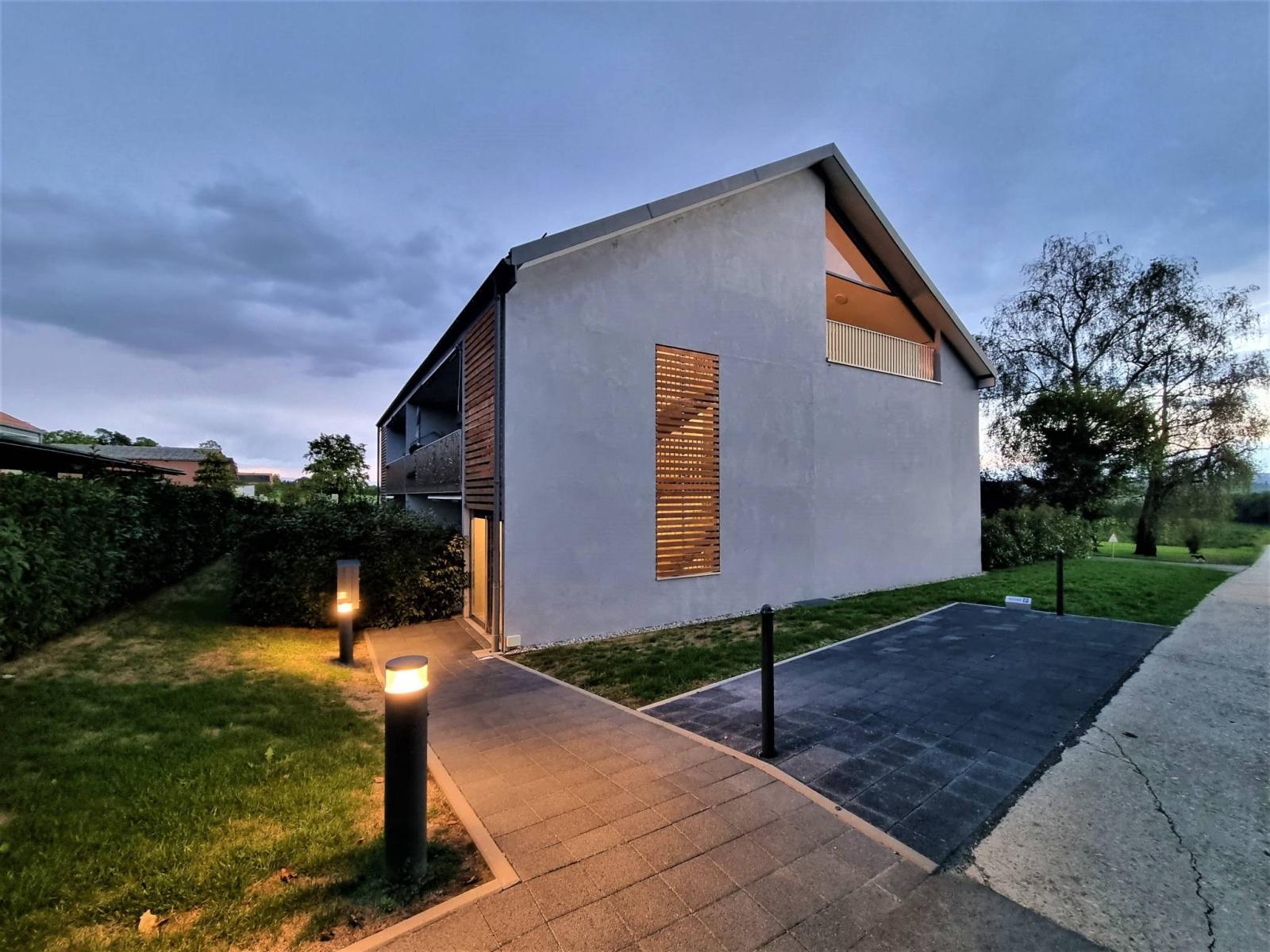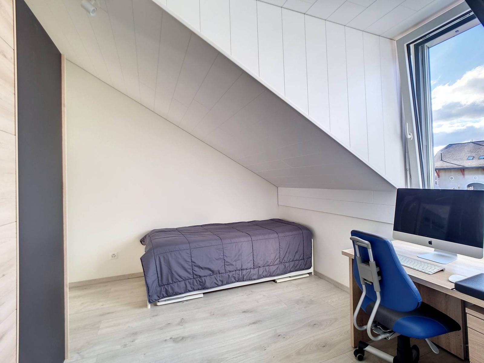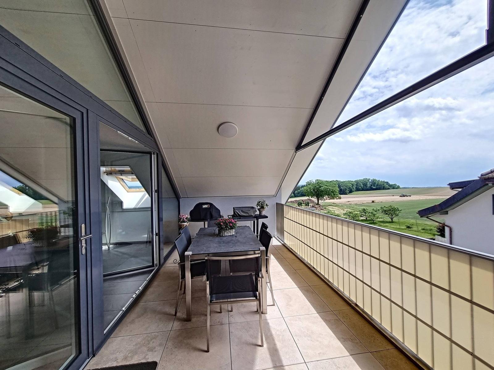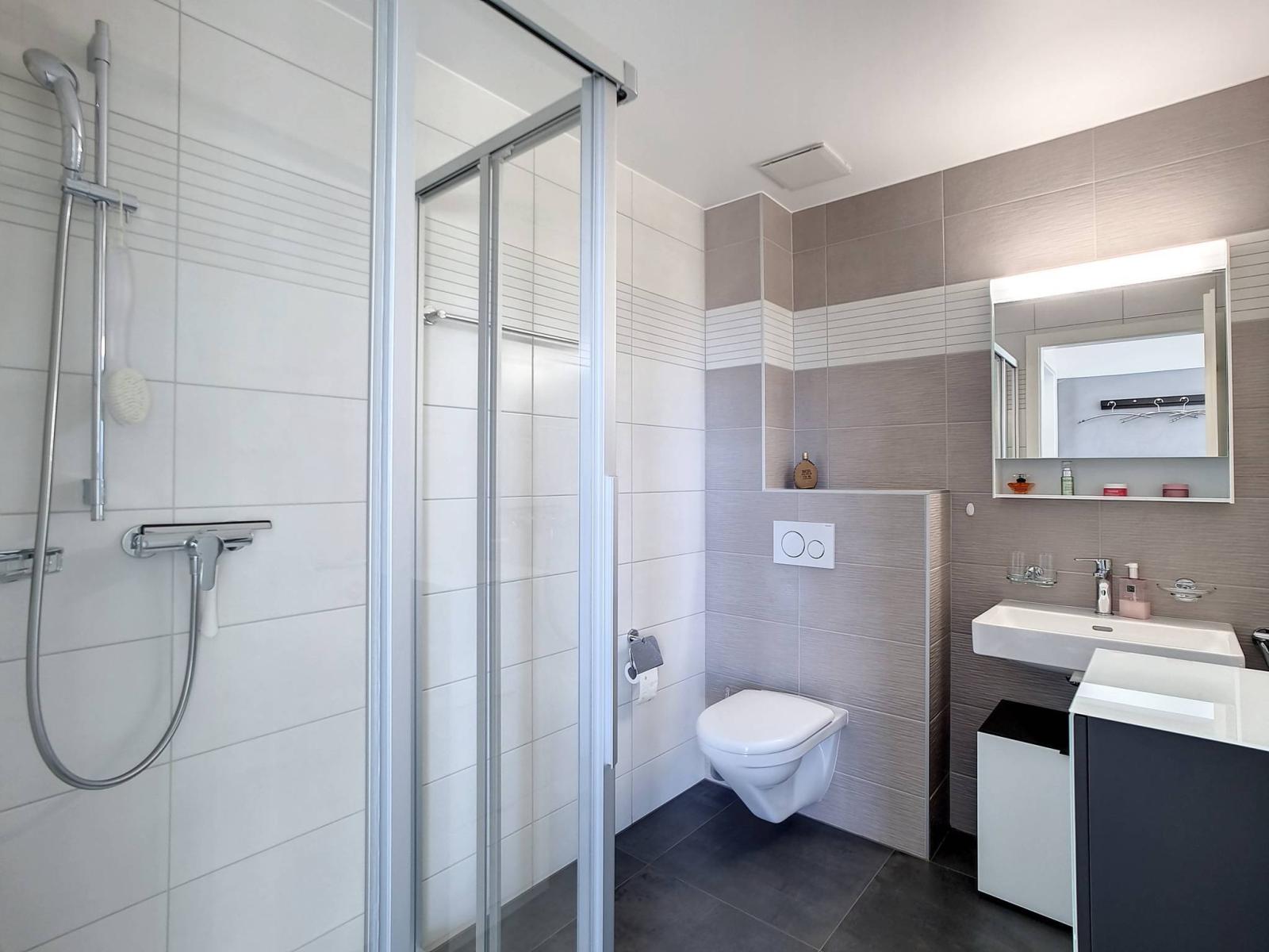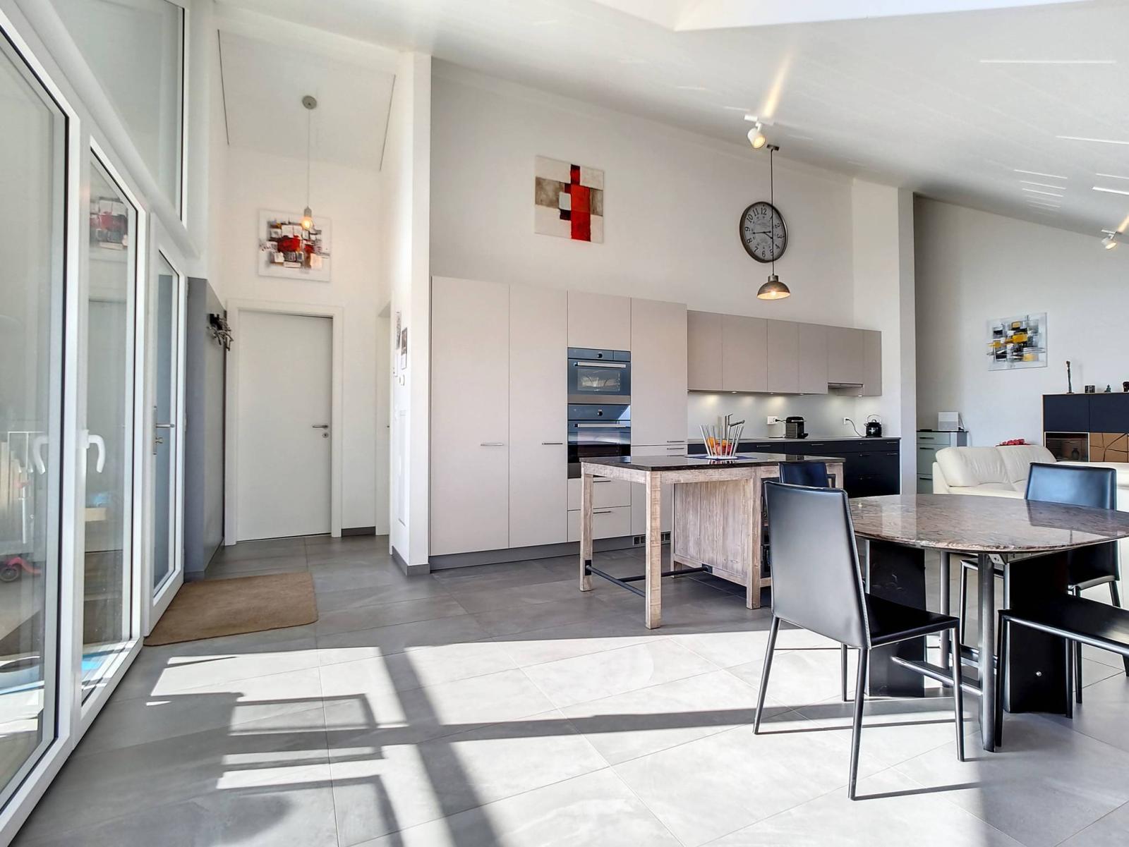 All'interno di un edificio a misura d'uomo di 2 piani (lotto ultimo piano = senza ascensore), costruito nel 2017, il PPE è costituito da 2 piccoli edifici di 6 e 8 lotti. L'appartamento è mansardato, con un ampio balcone coperto (tipo loggia aperta) di quasi 19 mq! Questa è organizzata in modo da poter rimanere "aperta" o "semichiusa" da vetri amovibili, per poterne beneficiare tutto l'anno.