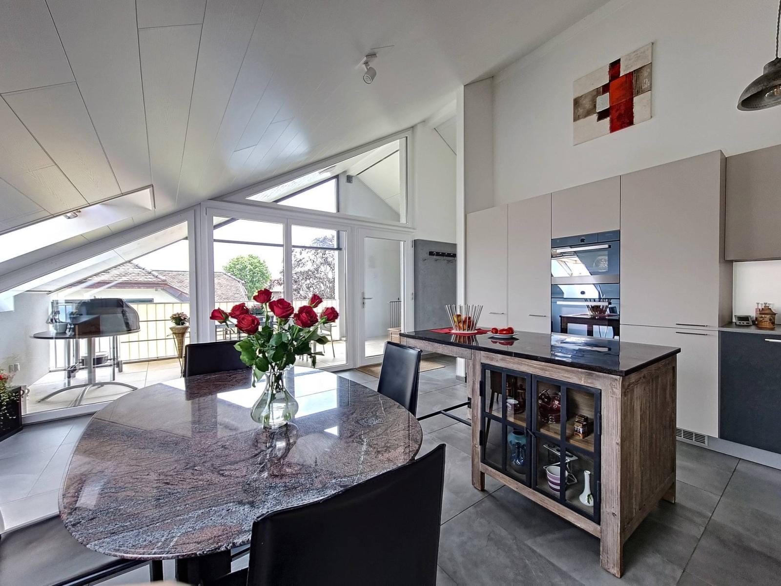 In una posizione tranquilla e residenziale in un villaggio, alla periferia di Cossonay (Allens) e di tutti i suoi servizi (scuola, cultura, trasporti, negozi, farmacie, ecc.), si tratta di un appartamento di 3,5 locali piuttosto atipico e moderno (92,5 m² di peso) che proponiamo offerta scopriamo. E' a capanna, su metà piano e quindi aperto su 3 lati.