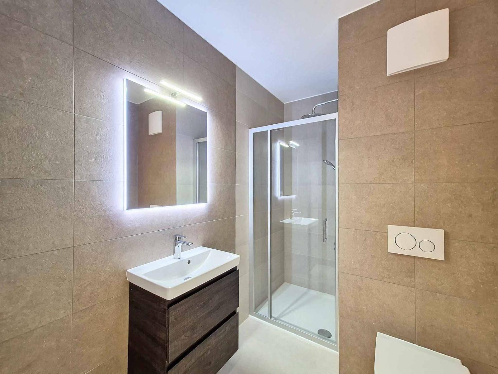 Superficie abitabile = 84 m2 Balcone = 22 m2 2 camere da letto Cucina aperta Bagno e doccia/WC separati Zona lavanderia (possibilità di installazione di una colonna di lavaggio) Armadi pensili all'ingresso