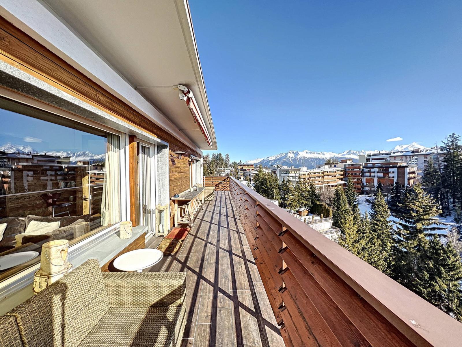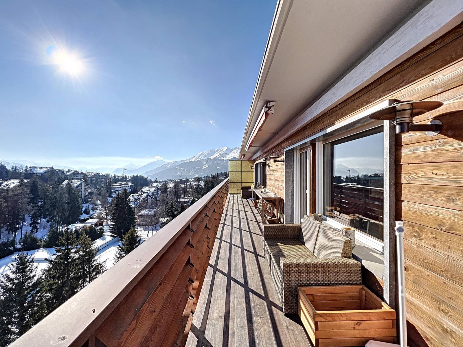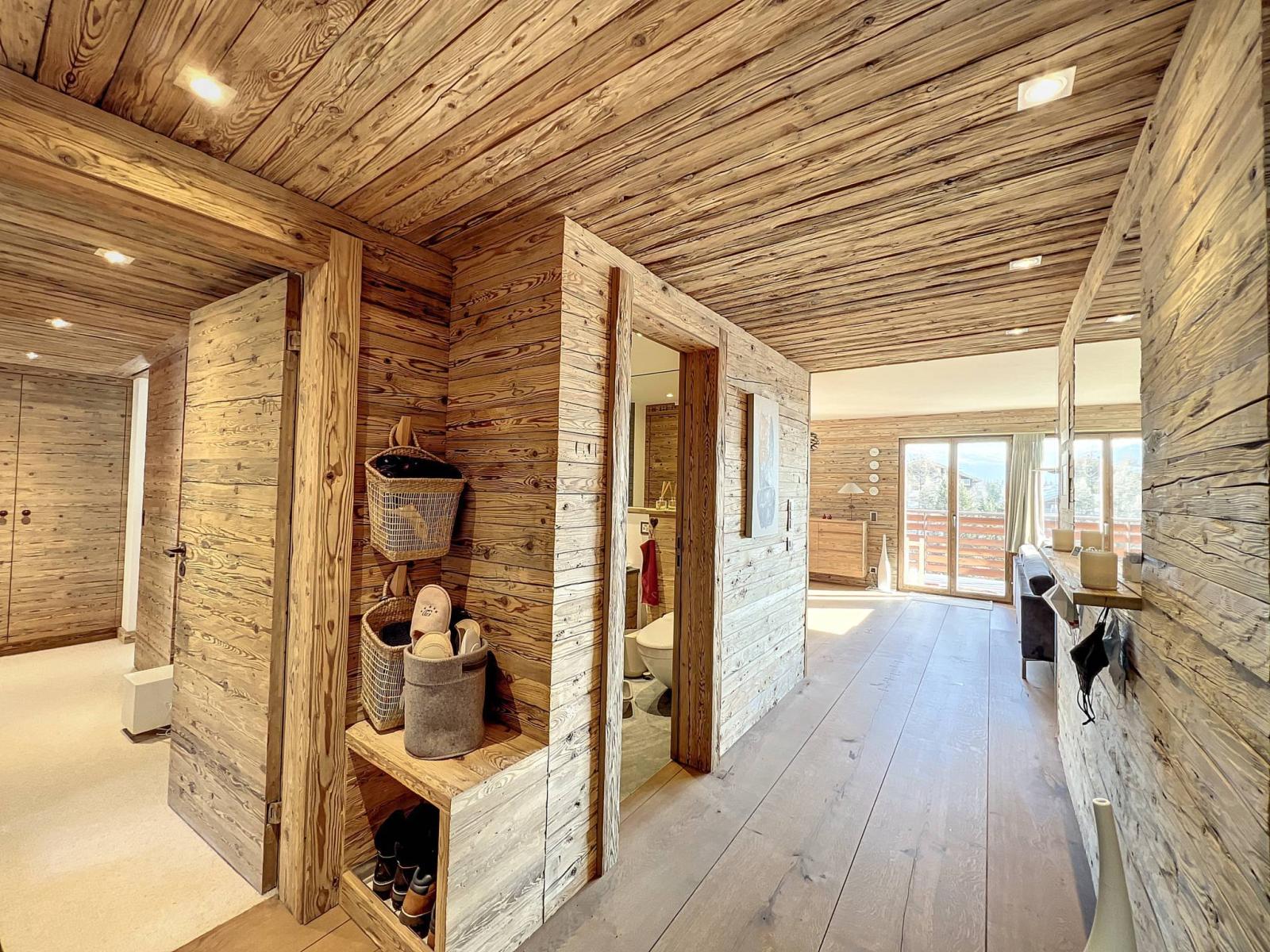 Completamente ristrutturato con materiali di pregio (serramenti nuovi, riscaldamento a pavimento, legno vecchio, tapparelle elettriche, porta blindata, pavimento in parquet, impianto audio Bose, elettrodomestici da cucina Miele, ecc.). Questo appartamento luminoso e spazioso beneficia di un bellissimo balcone est-sud e di una vista panoramica sulle vette alpine.