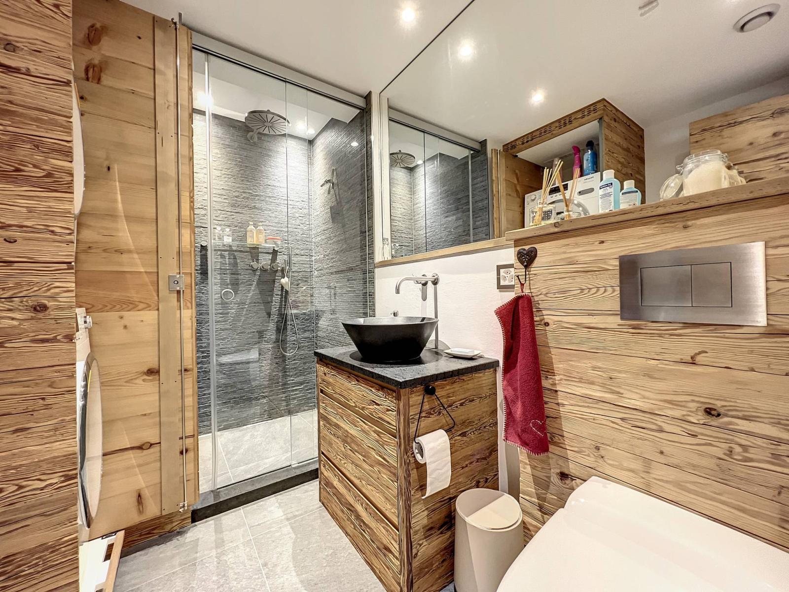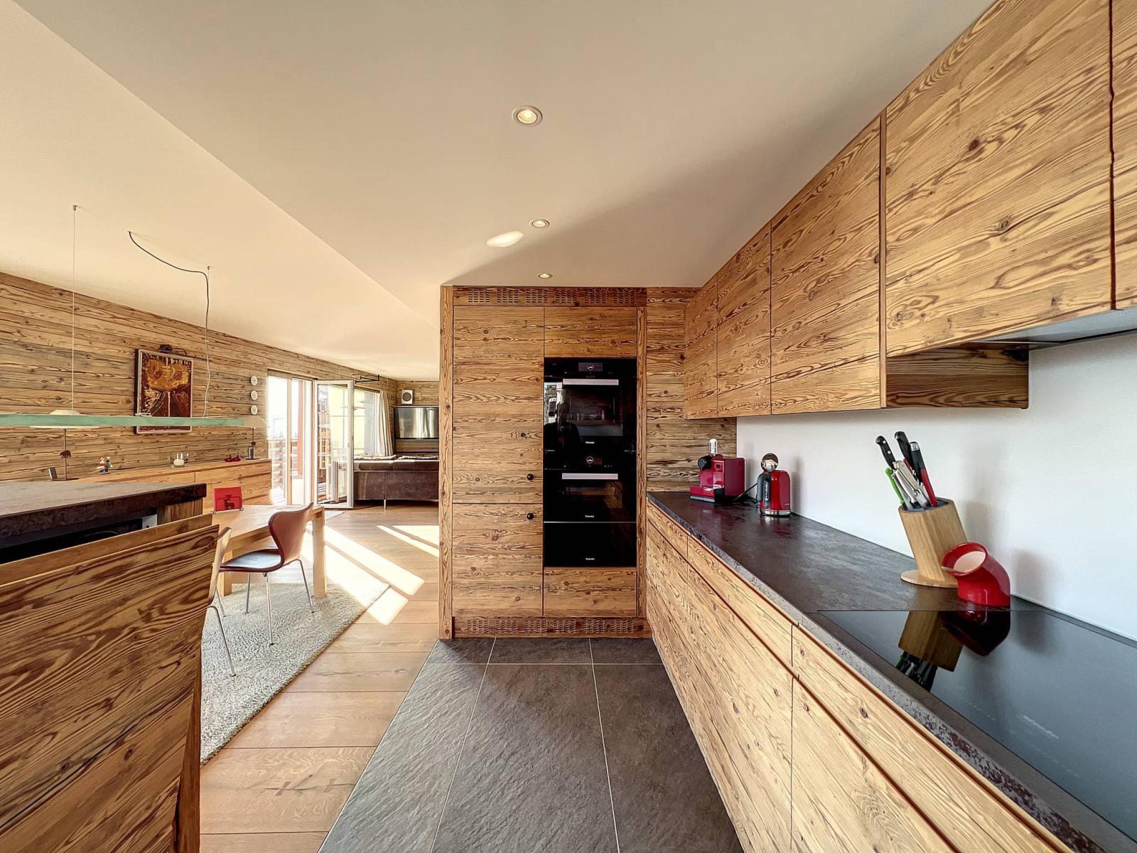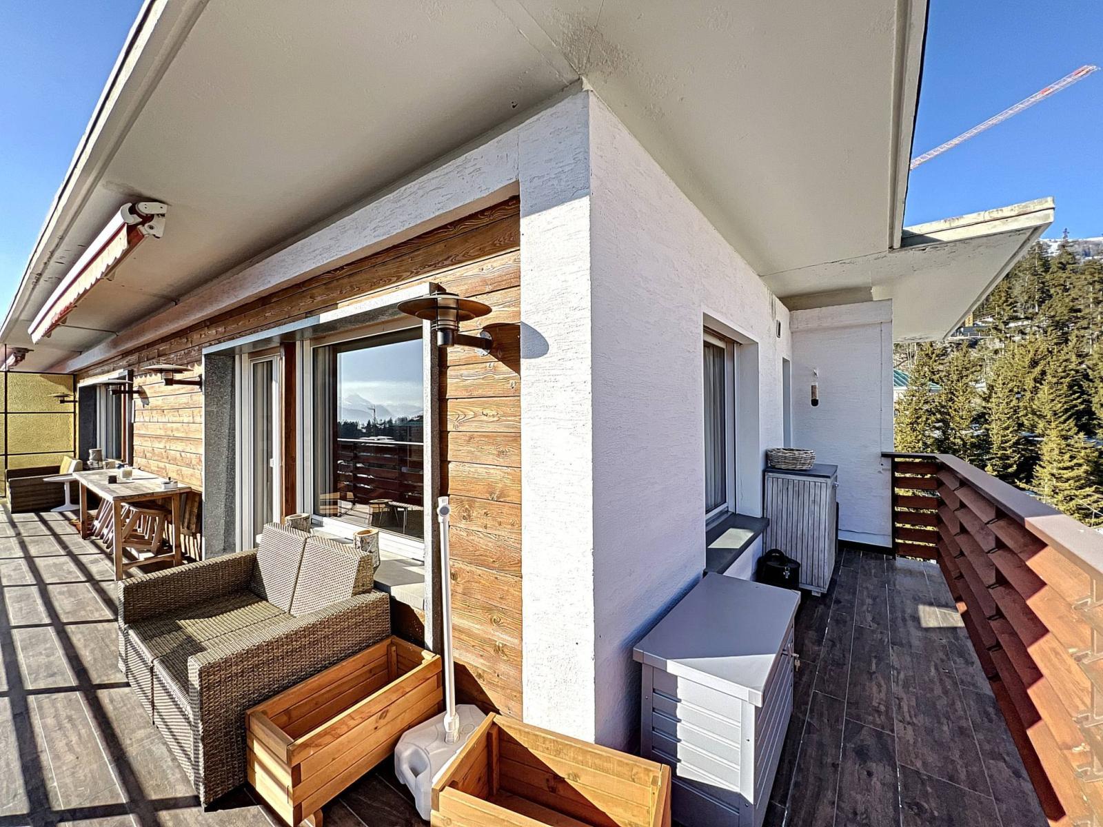 Completamente ristrutturato con materiali di pregio (serramenti nuovi, riscaldamento a pavimento, legno vecchio, tapparelle elettriche, porta blindata, pavimento in parquet, impianto audio Bose, elettrodomestici da cucina Miele, ecc.). Questo appartamento luminoso e spazioso beneficia di un bellissimo balcone est-sud e di una vista panoramica sulle vette alpine.