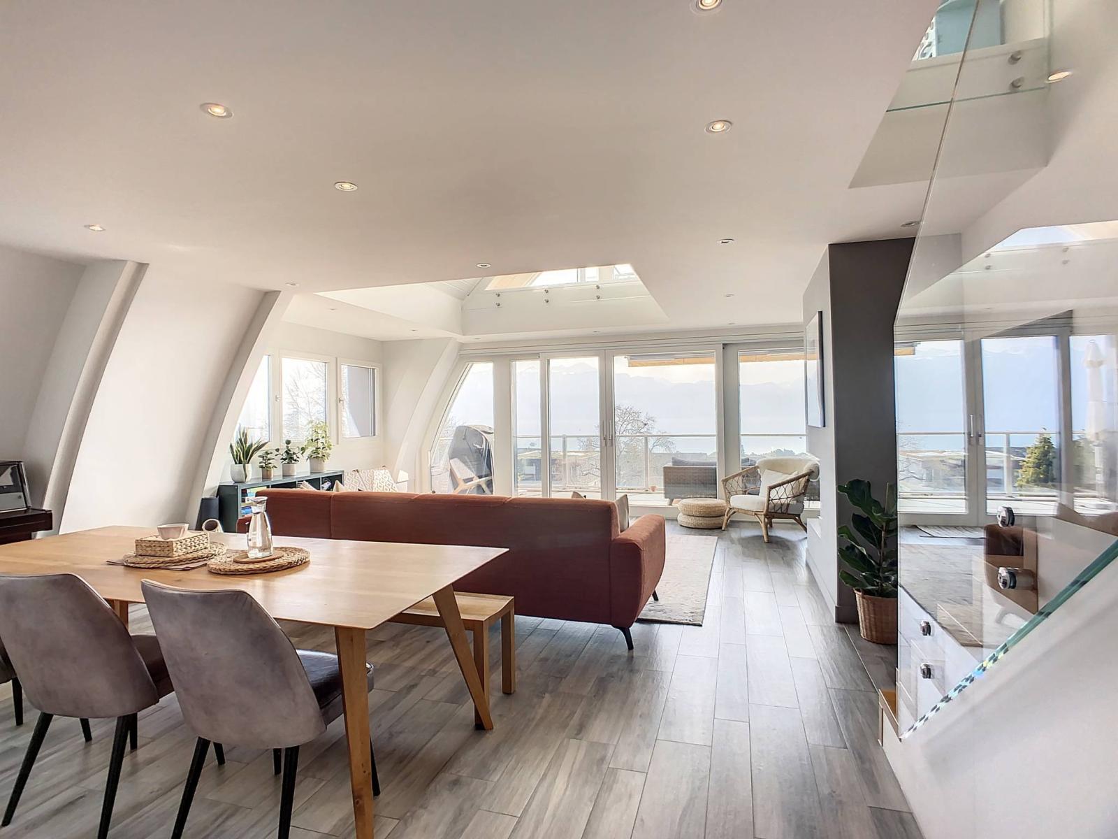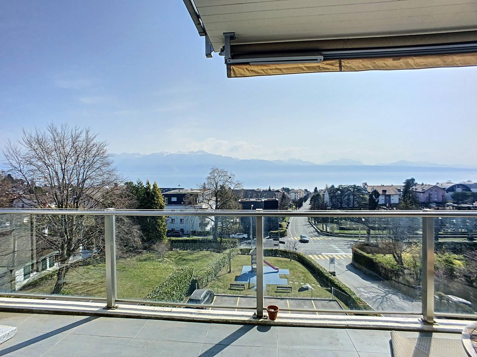 Situata vicino a tutti i principali servizi, questa proprietà gode di una magnifica vista sul lago e sulle Alpi.