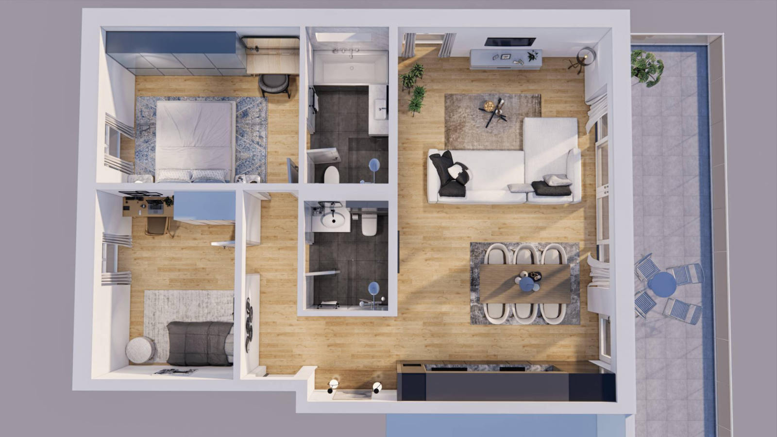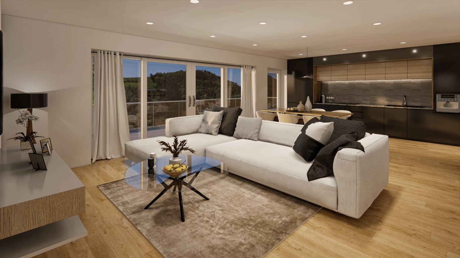 Gli appartamenti di questo progetto, che vanno dai 3,5 ai 5,5 locali, beneficiano tutti di ampi balconi o terrazzi per la sistemazione al piano terra e in mansarda.