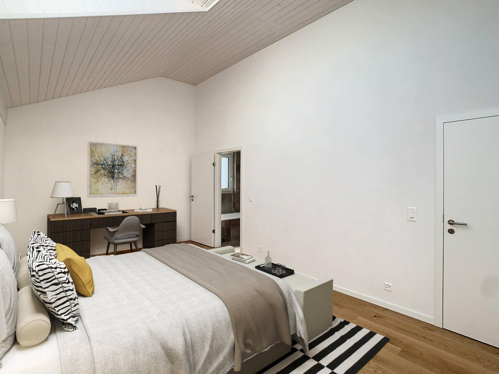Si compone di un ingresso con guardaroba, un ampio soggiorno/cucina di 41 mq, una spaziosa camera matrimoniale di 20 mq con bagno privato, un'altra camera di 16 mq oltre ad un WC/doccia dotato di attacco per colonne lavaggio.
