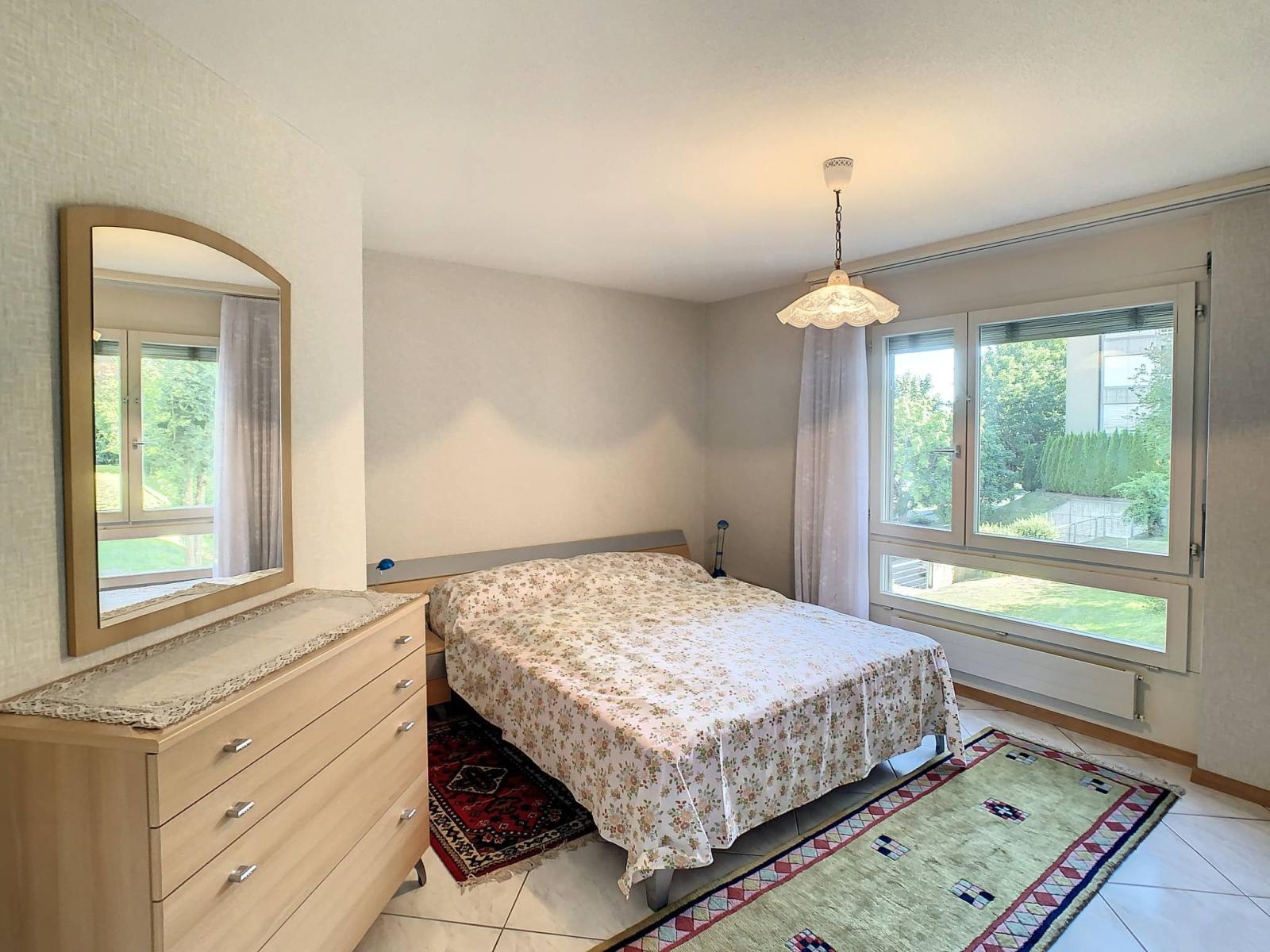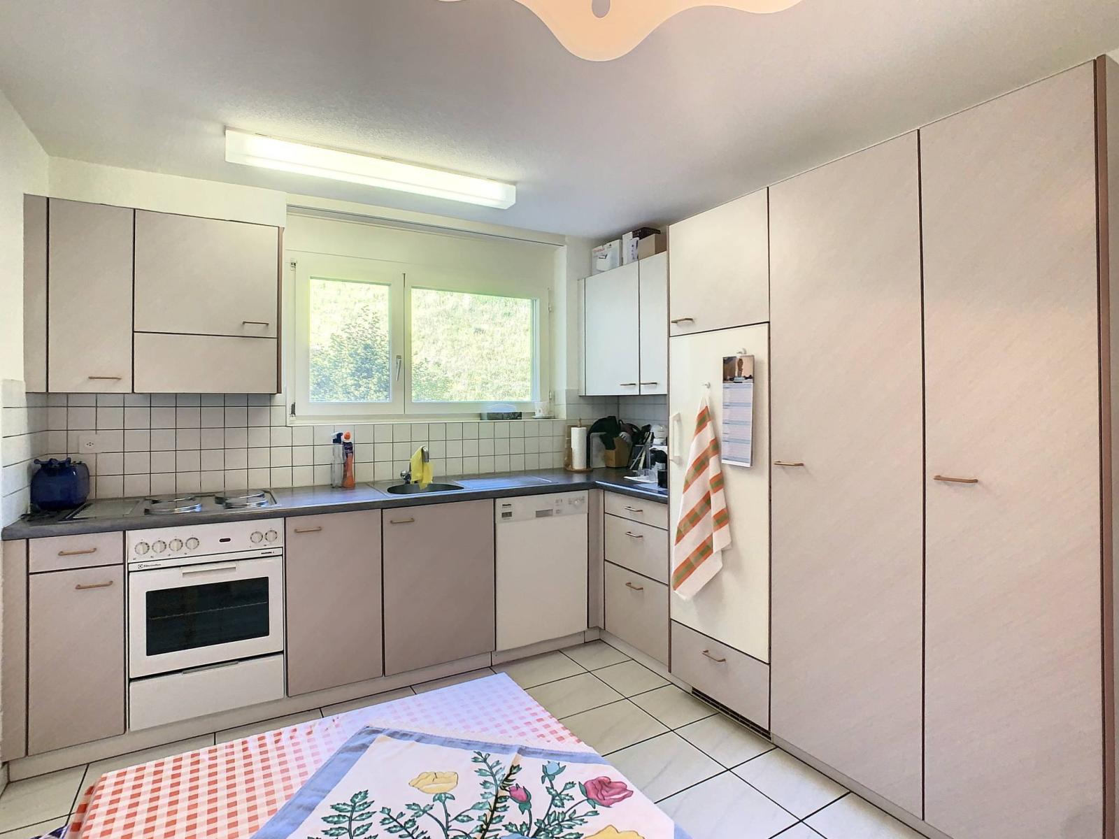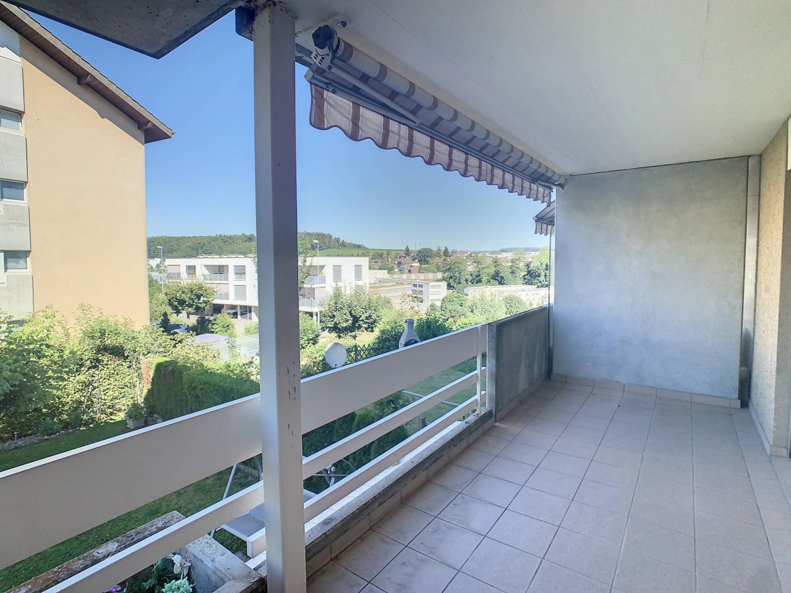Situato al 1° piano di un edificio PPE di 16 appartamenti con ascensore, questo appartamento di 4,5 locali, esposto a ovest, costruito nel 1991, totalizza 94 m² di superficie abitabile completati da un balcone di 10 m², portando la superficie ponderata a 99 m².