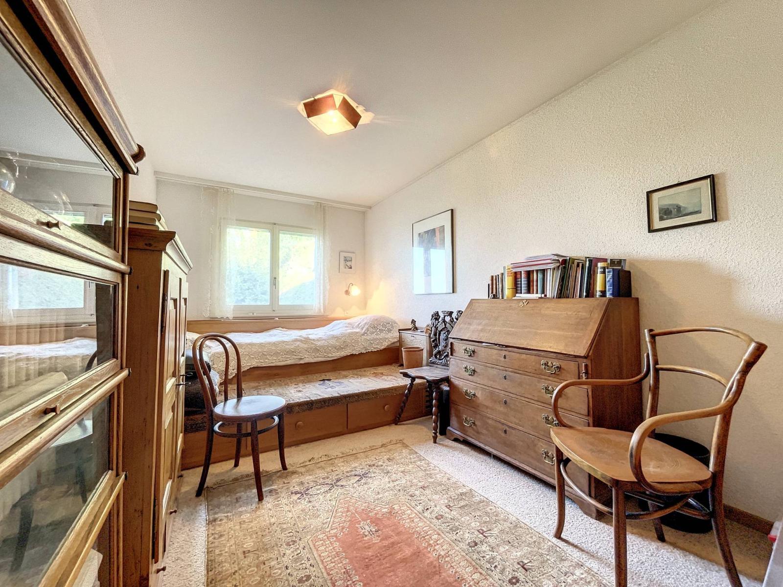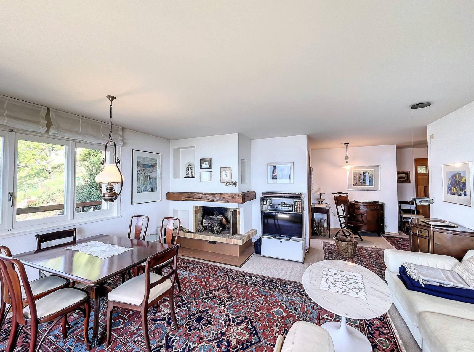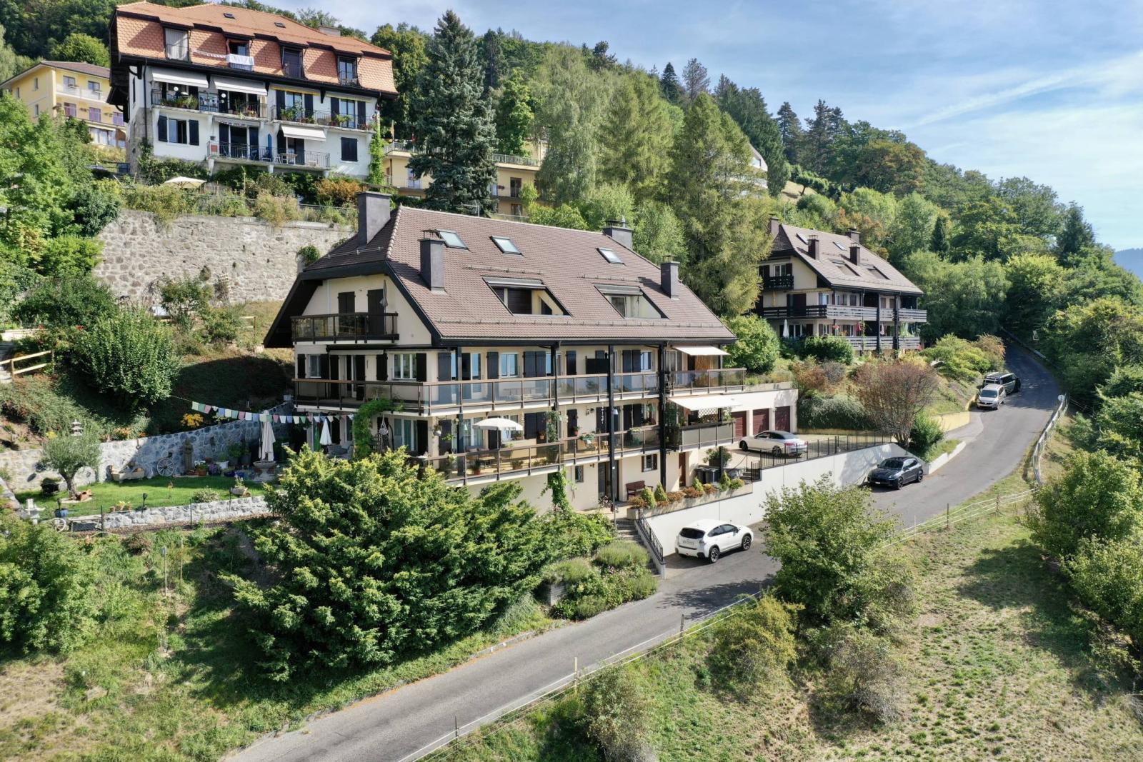 Questo appartamento di 3,5 locali si trova al 1° piano senza ascensore di un piccolo PPE di soli 5 appartamenti costruito nel 1981. Si trova in una zona tranquilla, a 5 minuti a piedi dalla bucolica funicolare che collega Vevey al Mont-Pèlerin.