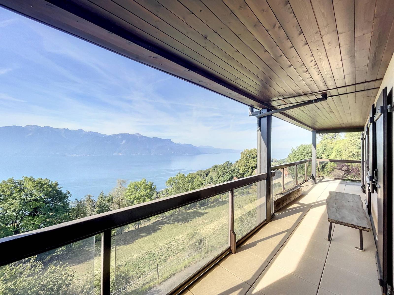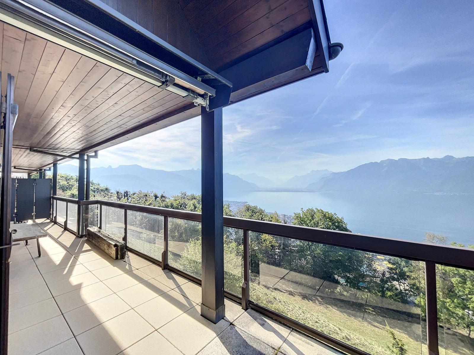 Gode di una superficie abitabile di circa 85 m², con un balcone di circa 30 m² e gode di una splendida vista sul Lago di Ginevra e sulle montagne. Ecco la sua disposizione interna: - Un ingresso;- Una cucina;- Un soggiorno;- Un bagno con doccia/WC;- Due camere da letto di cui una con bagno/WC adiacente;- Un ampio balcone di 30 m². Completa l'appartamento un box auto al prezzo di CHF 30.000.-.