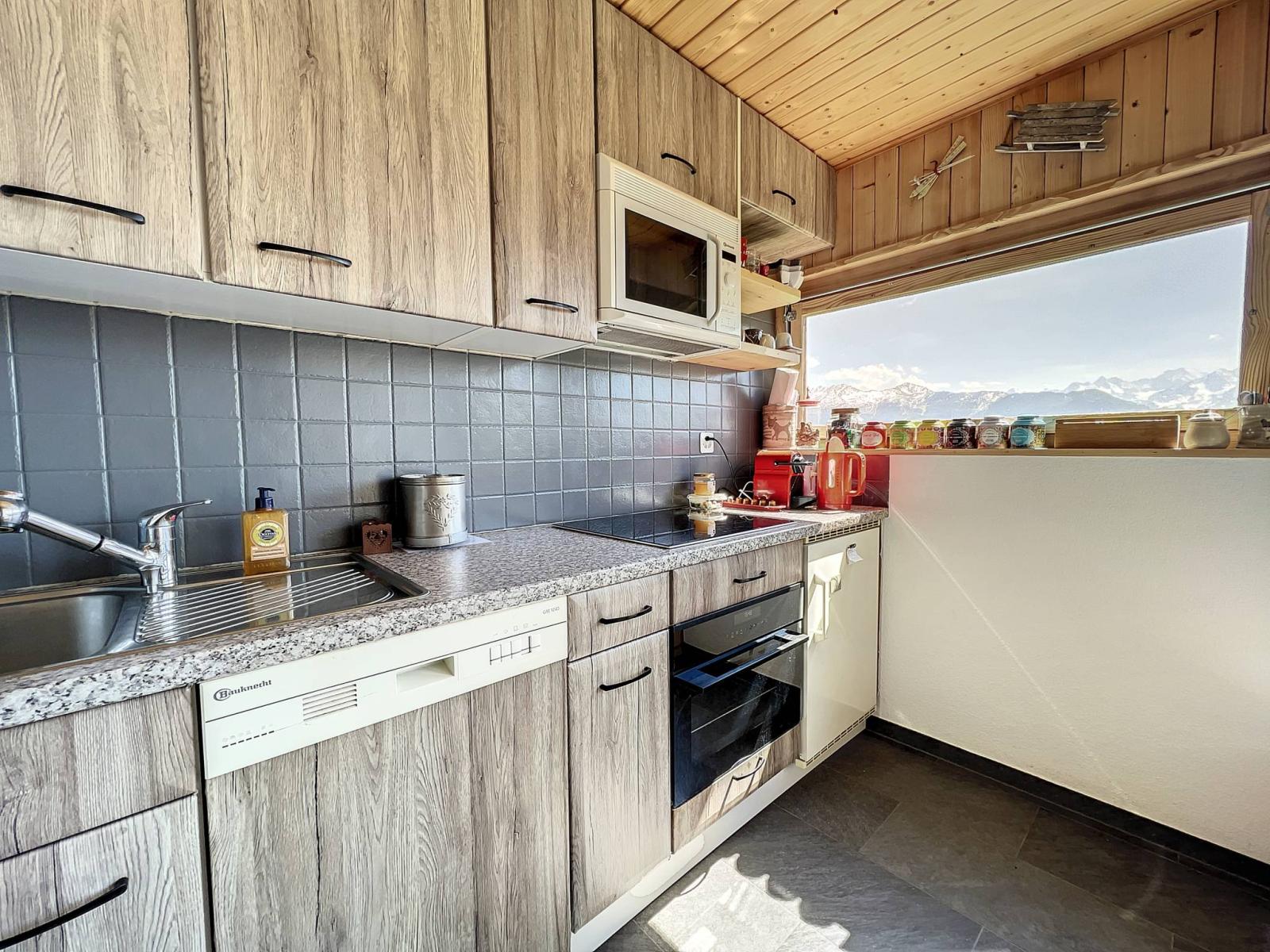 Con la sua piacevole cucina semi-aperta aperta sulla sala da pranzo e il balcone con vista mozzafiato, questo appartamento è il rifugio alpino ideale.