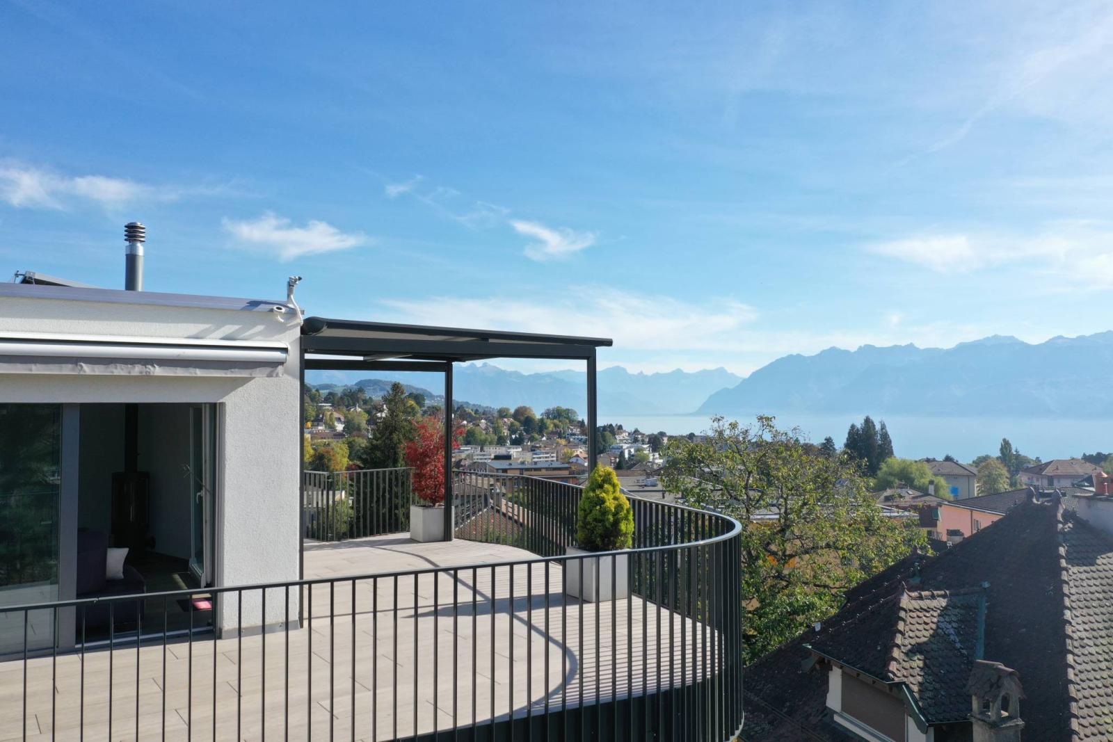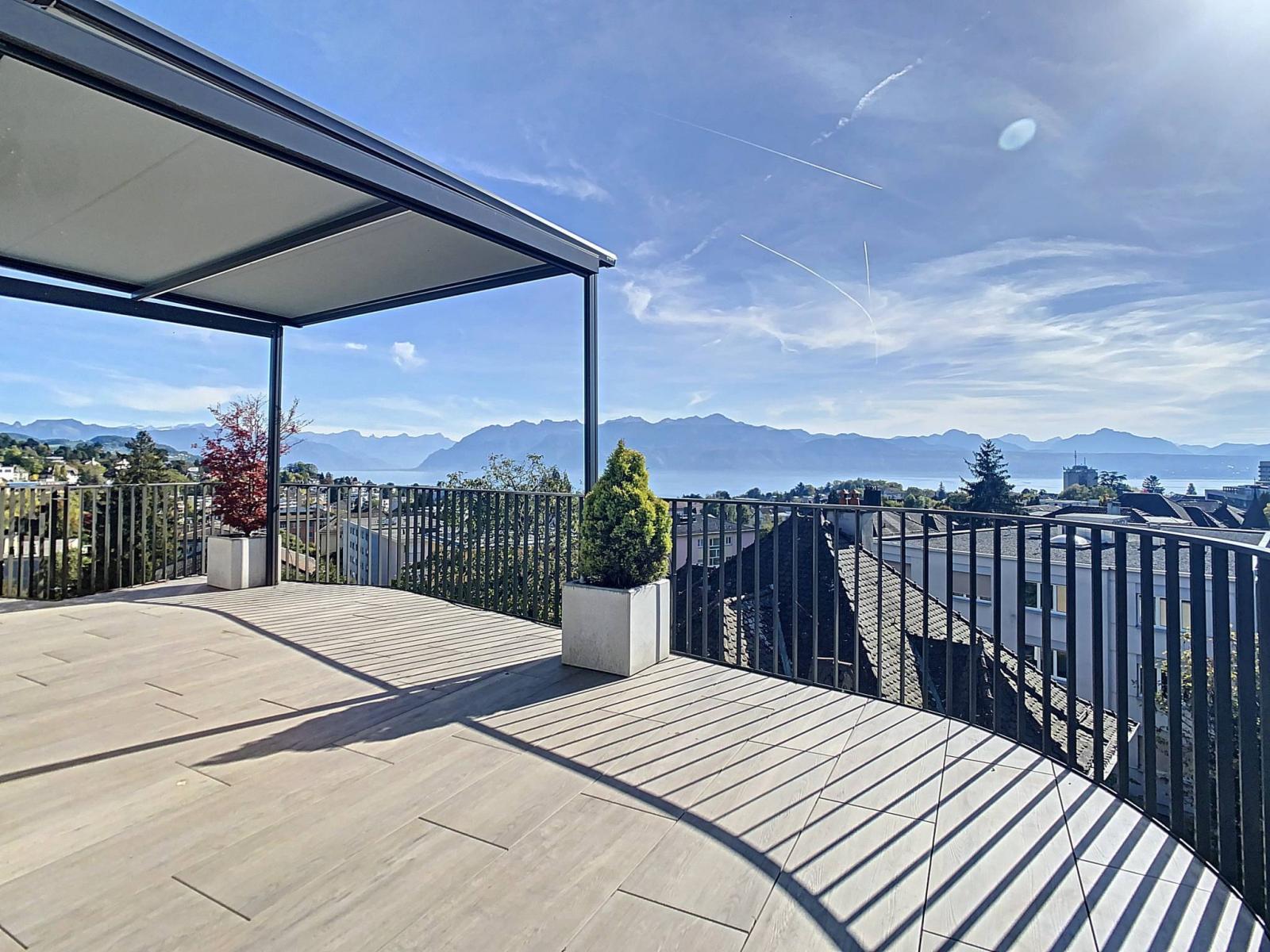 Occupando l'intero ultimo piano di un piccolo PPE residenziale di 9 appartamenti, questo attico beneficia di una terrazza panoramica e libera di 115 mq. Dotata di ascensore privato e distribuita in maniera razionale ed armoniosa, questa proprietà è in perfette condizioni e non necessita di alcun lavoro di ristoro.