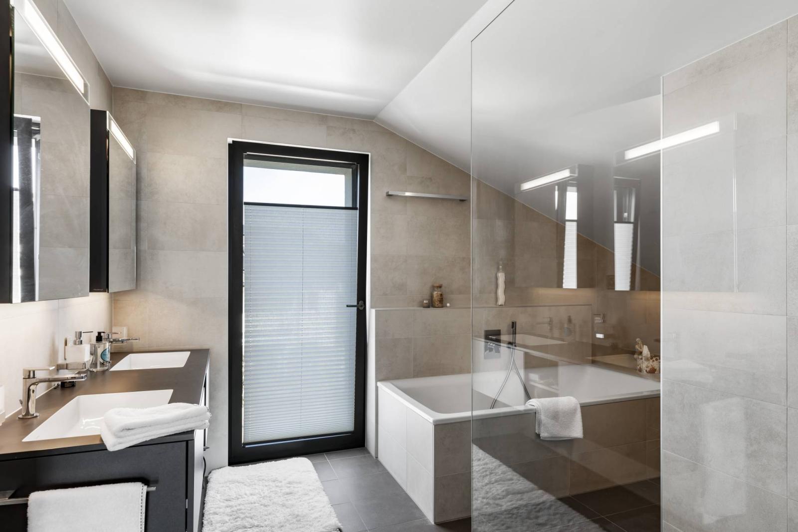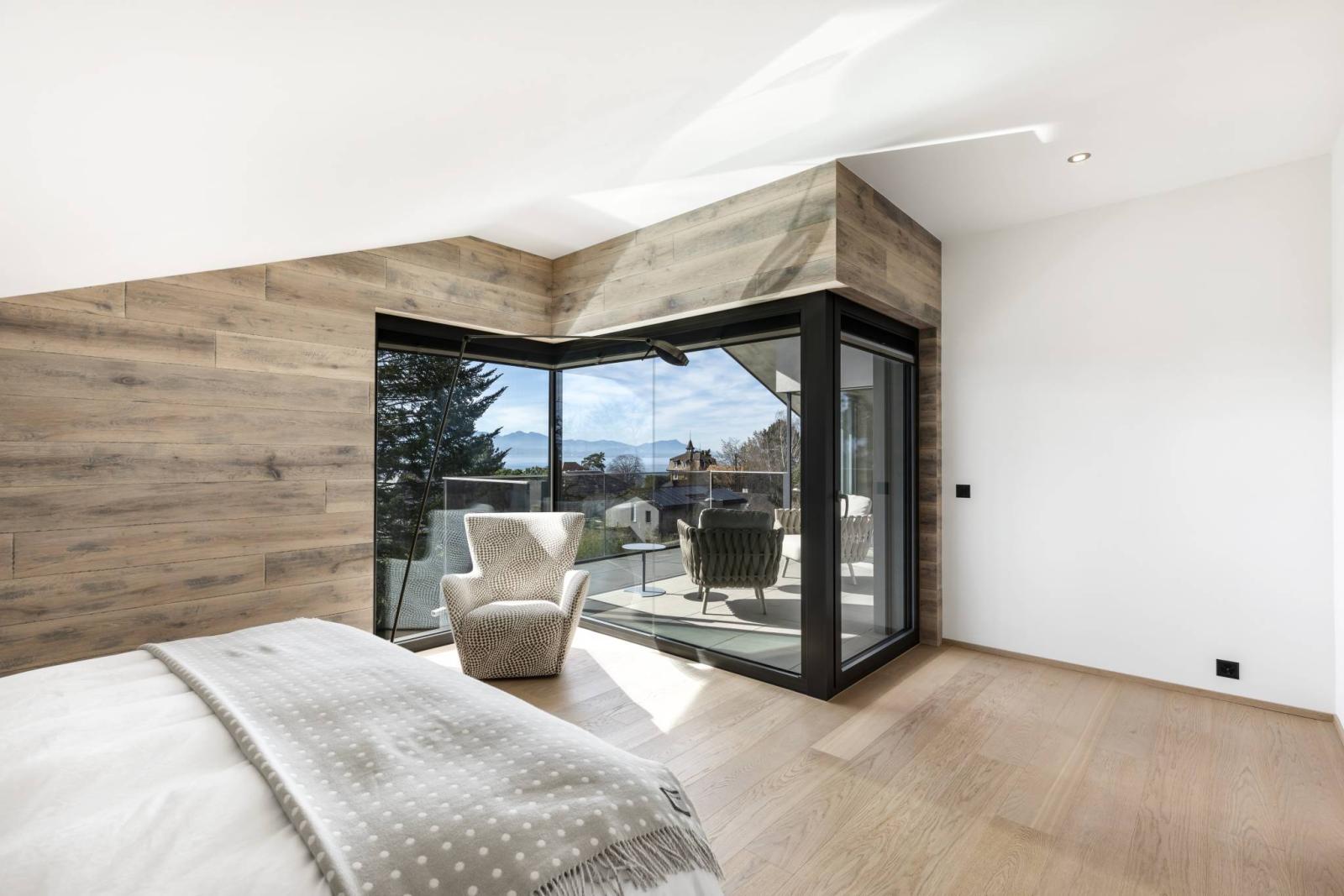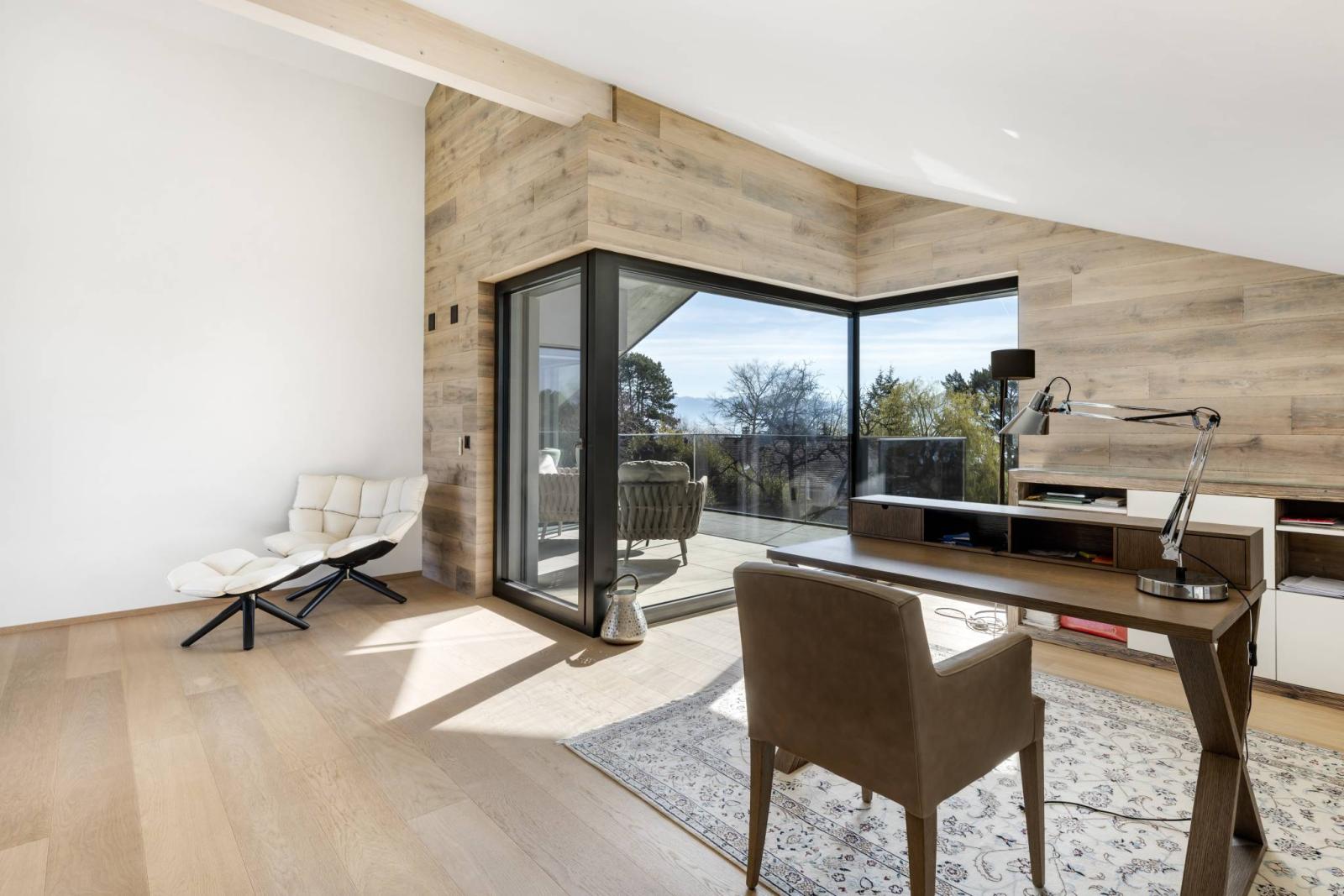 La villa offre un perfetto "in&out" in estate con numerose vetrate rimovibili al piano terra. La sapiente installazione permette di non avere inconvenienti da parte degli altri e quindi di sfruttare appieno questo effetto di trasparenza. Inoltre, all'ultimo piano, un grazioso “belvedere” sul lago e sulle Alpi è offerto da una terrazza di 14 mq.