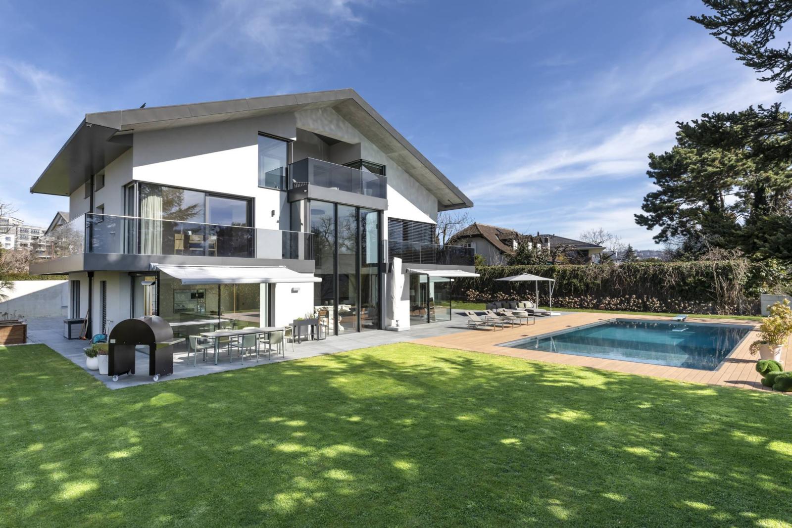 - Più che una casa moderna e individuale dalle proporzioni impressionanti e dal design raffinato, l'architettura è incentrata su volumi ottimizzati con lucernari (abbondanti vetrate). È soprattutto “un universo”, con materiali di alta gamma.